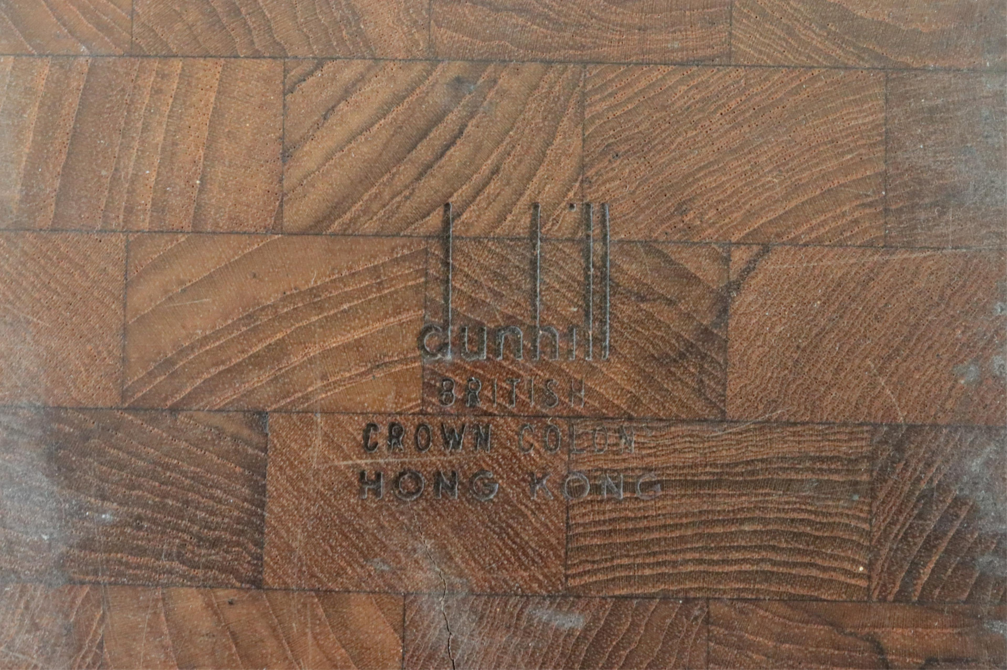 2 Gilt Bronze & 2 Wood Boxes, one a Dunhill humidor marked British Crown Colony, Hong Kong in midcentury style, double headed phoenix boxed, marked with a 'K' Dimensions: Humidor 7" H x 5 3/4" sq. (SARO5263/4)(WT)See More