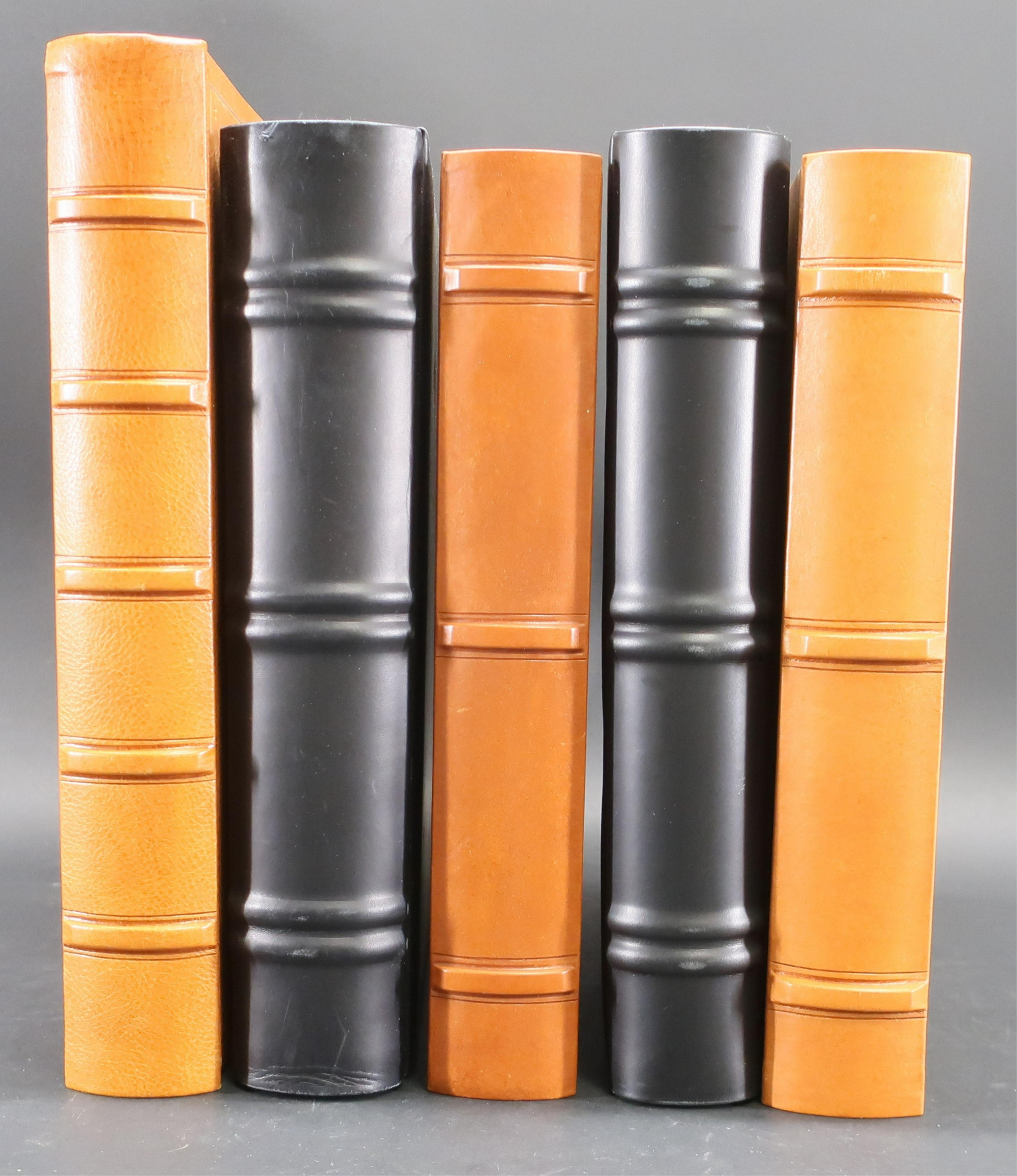 5 Leather Portfolios, 3 in full and 2 quarter bound, 2 in black, stamped Department 56 Dimensions: Largest 14 1/2" square (EBAZ5164/5)(WT)