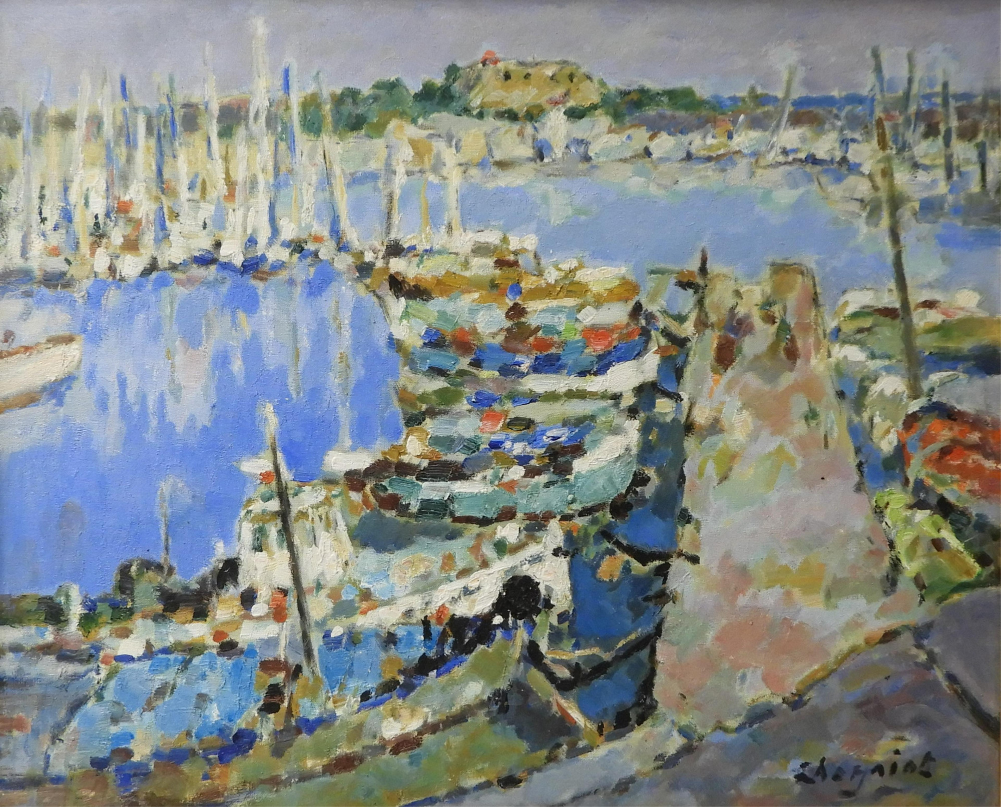 Alfred Chagniot (French, 1905 - 1991) Port d'Antibe, oil on canvas harbor scene. Signed lower right. Property from a fourth generation gallery, NYC Dimensions: 18 x 22" framed: 27 x 31.5 x 2.25" (HEAR103)(EL)