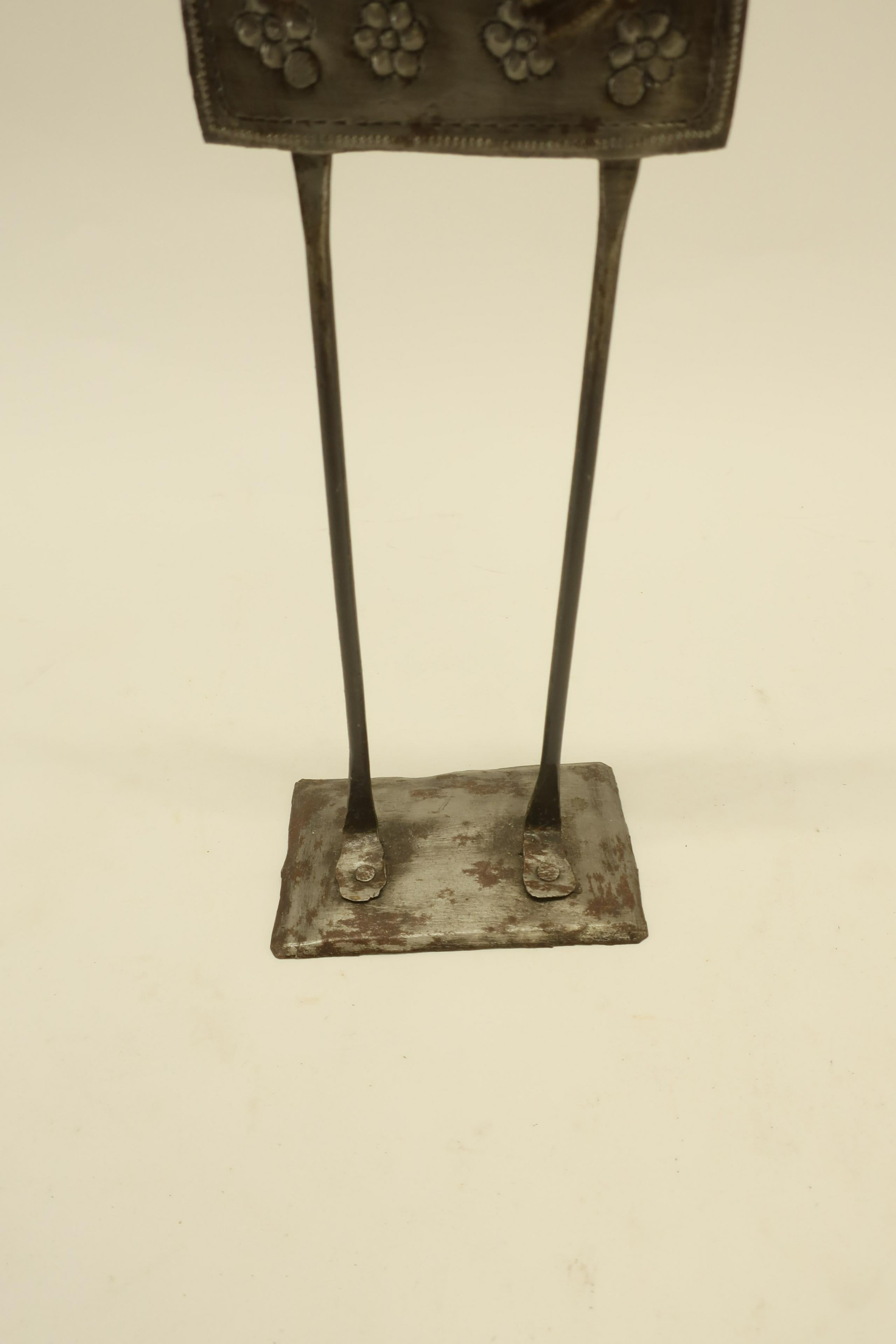 Probably by Serge Jolimeau (not signed). Punchwork, incised, cut-out features, details. Buffed metal with varnish. Dimensions: 14.75"H x 8.75W (SARO6451)(JP)