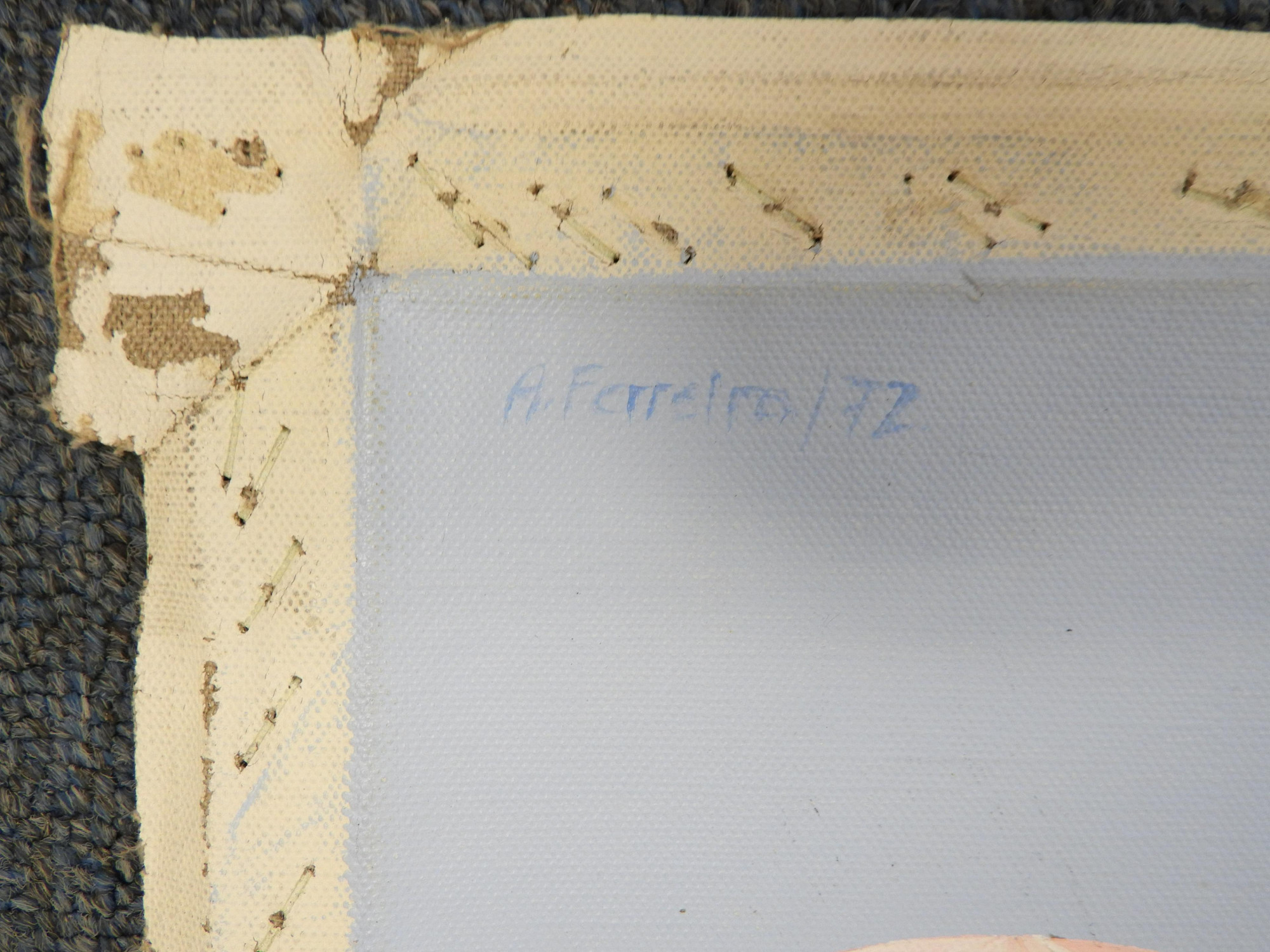 Antonia Ferreiro (Chilean/French) Oil on canvas of surrealist hot air balloons. Signed upper left, dated (19)72 Property from a fourth generation gallery, NYC Dimensions: 29 x 24" unstretched (HEAR216)(EL)