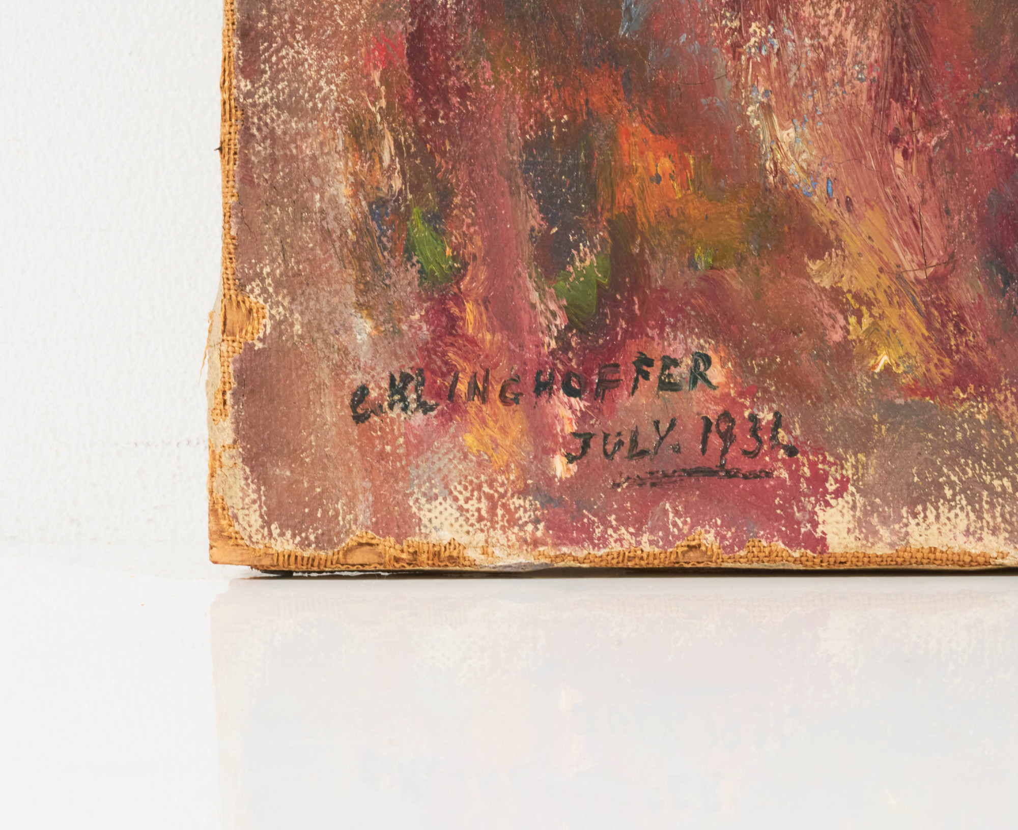 some craquelure throughout, canvas is cracked and missing in some areas in the flaps