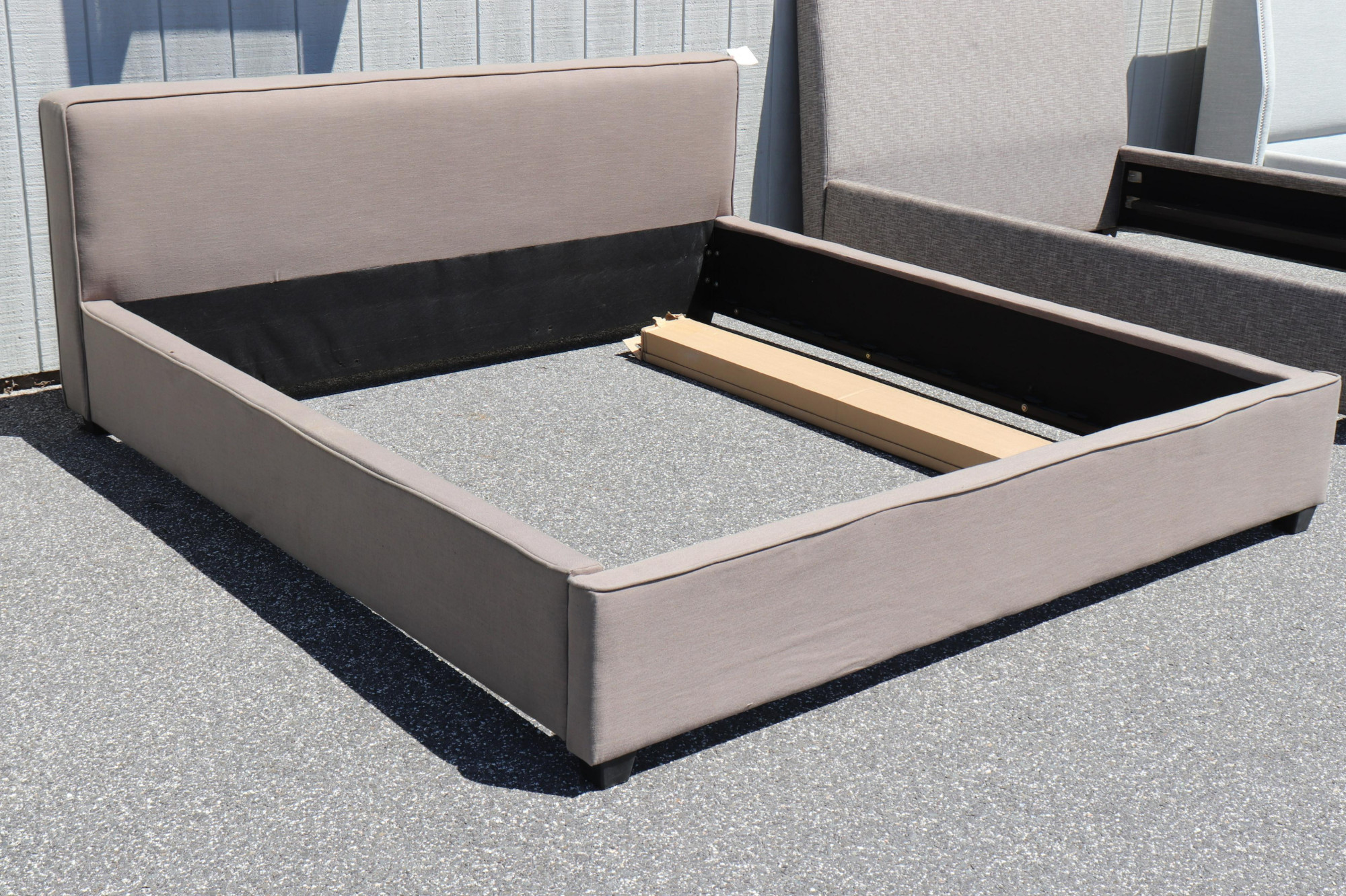 Contemporary Khaki Cotton Upholstered King Bed Dimensions: 35" H x 84" W x 100" L (EBAZ638)(MS)
