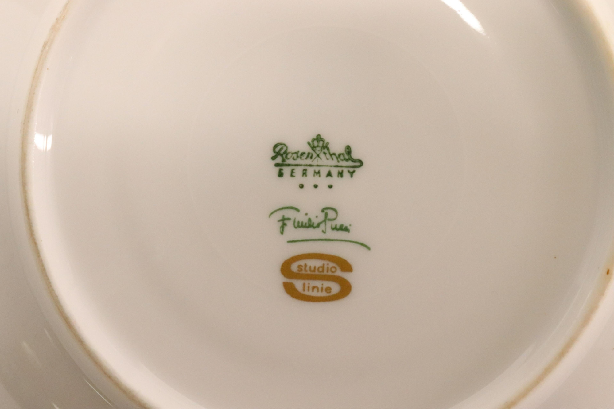 Espresso Cups includes 3 different colored Rosenthal Pucci Studio Linie groups, one group lacking 2 cups, one group lacking one saucer. Esteri Tomula for Arabia with 9 saucers and 10 cups