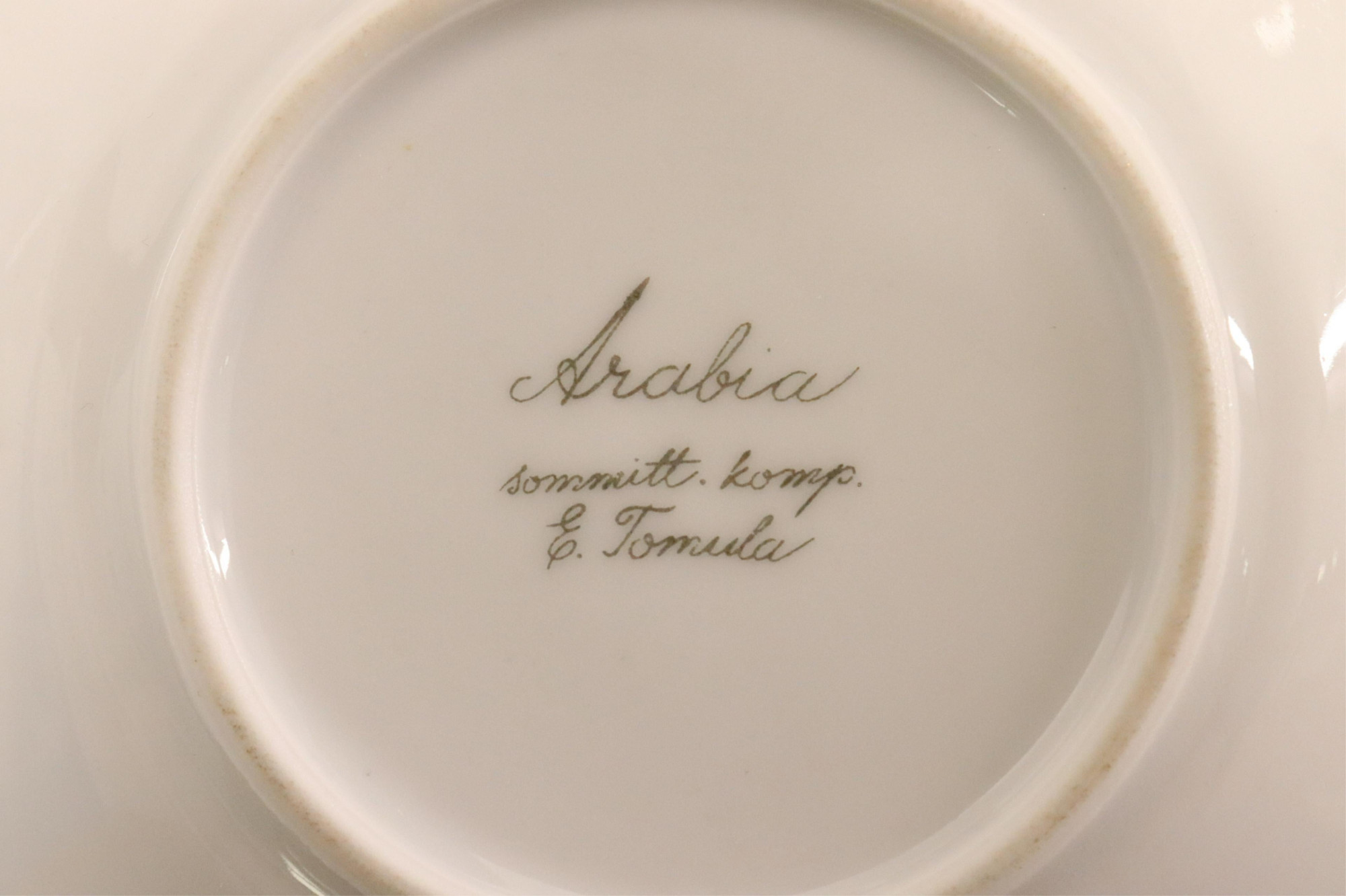 Espresso Cups includes 3 different colored Rosenthal Pucci Studio Linie groups, one group lacking 2 cups, one group lacking one saucer. Esteri Tomula for Arabia with 9 saucers and 10 cups