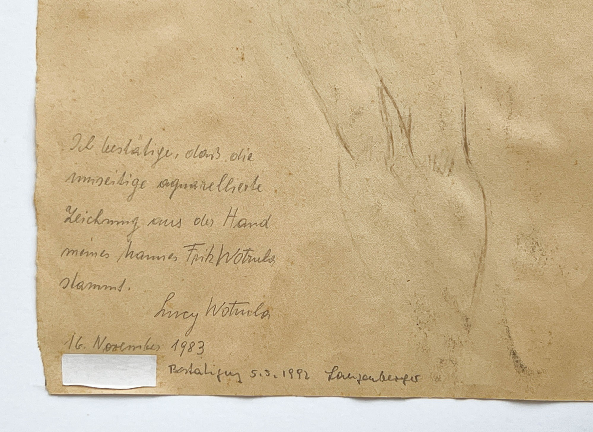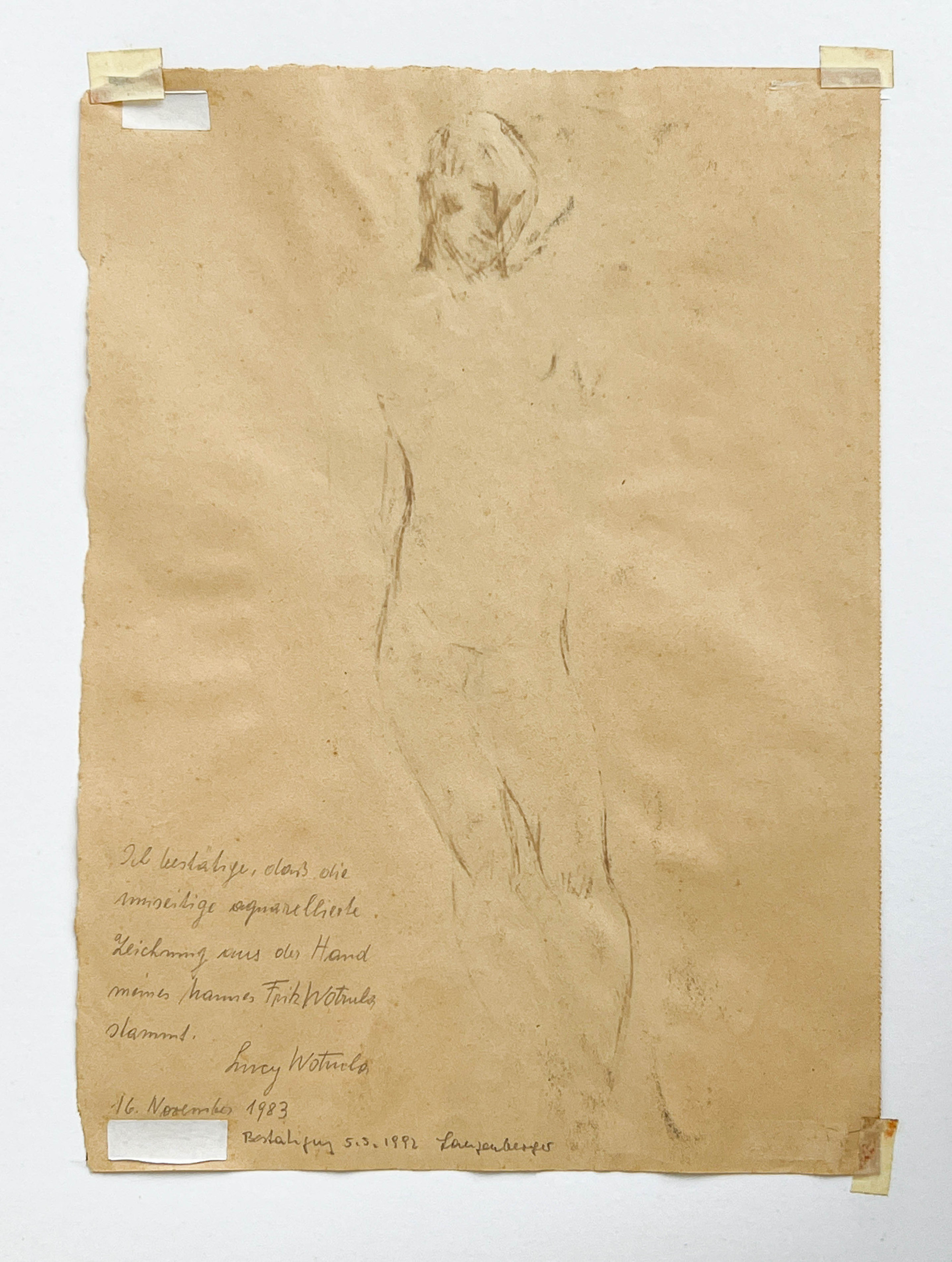 inscribed in German to verso: 'I confirm (or certify) that the drawing ... is from the hand of my husband, Fritz Wotruba. / Lucy Wotruba / 16 November 1983 / Confirmed 5.5.1992'
