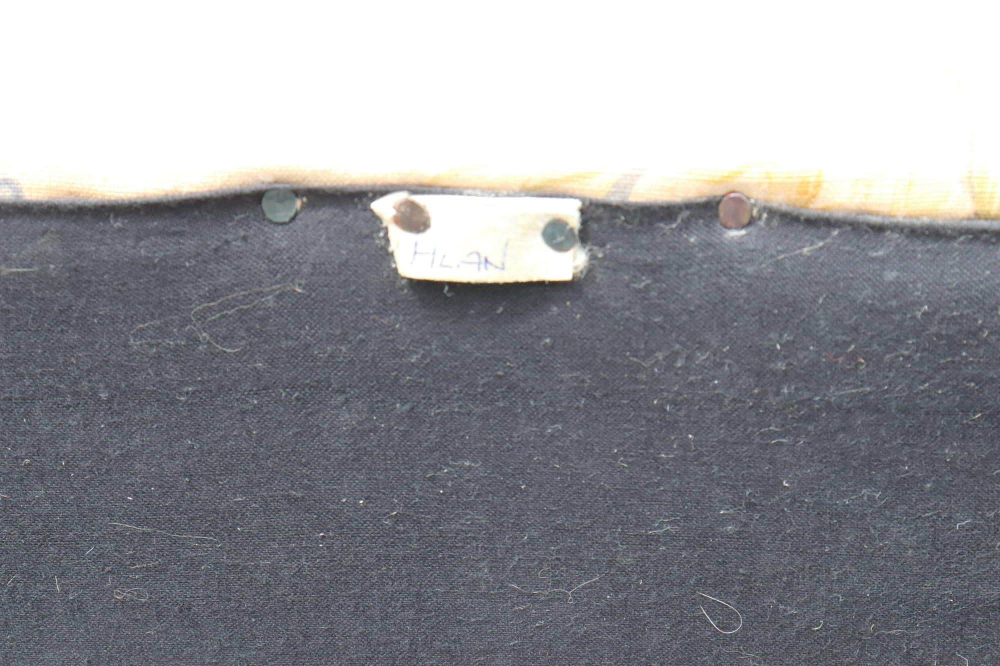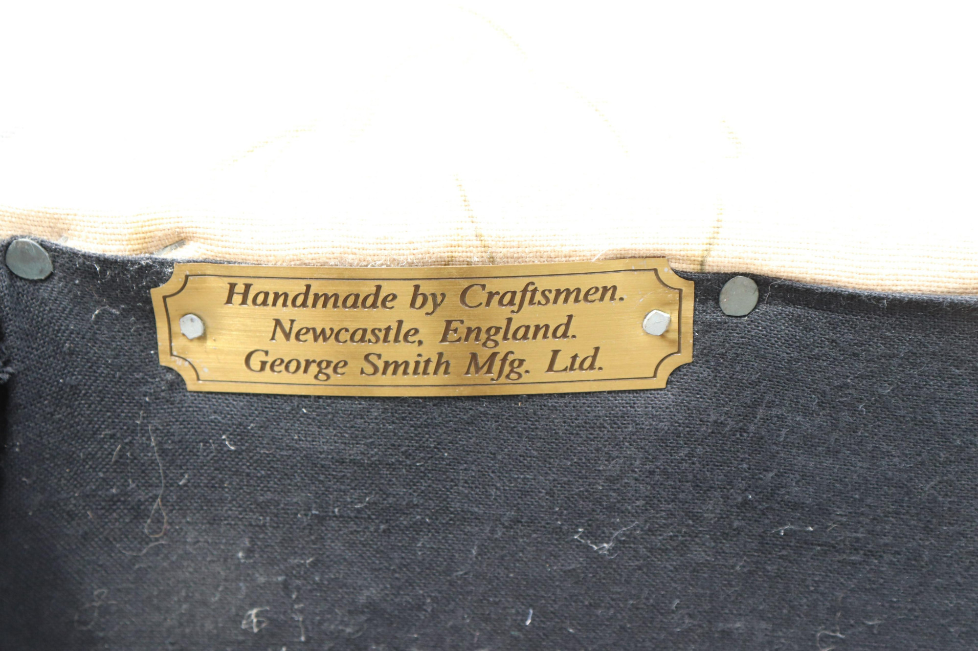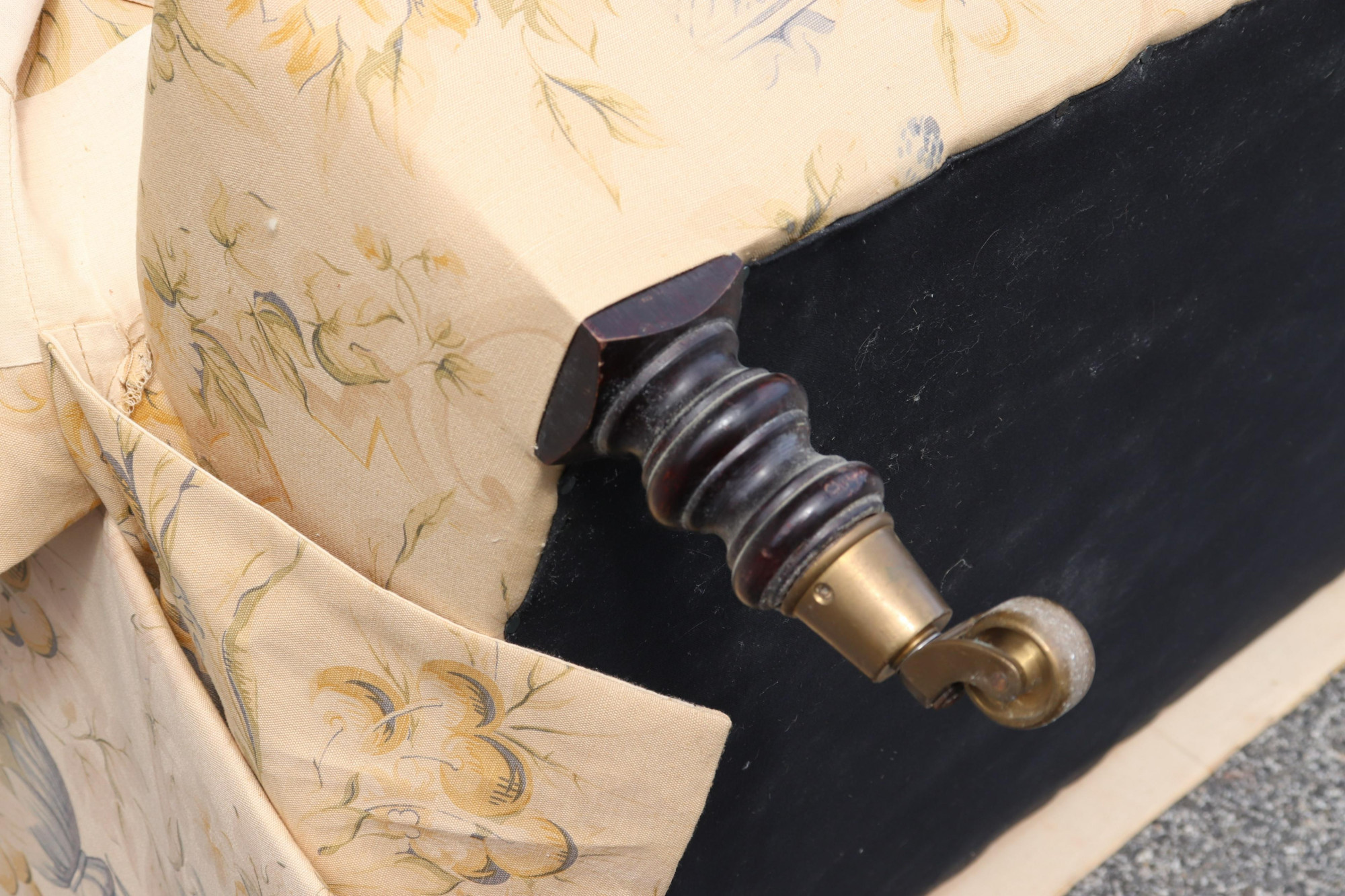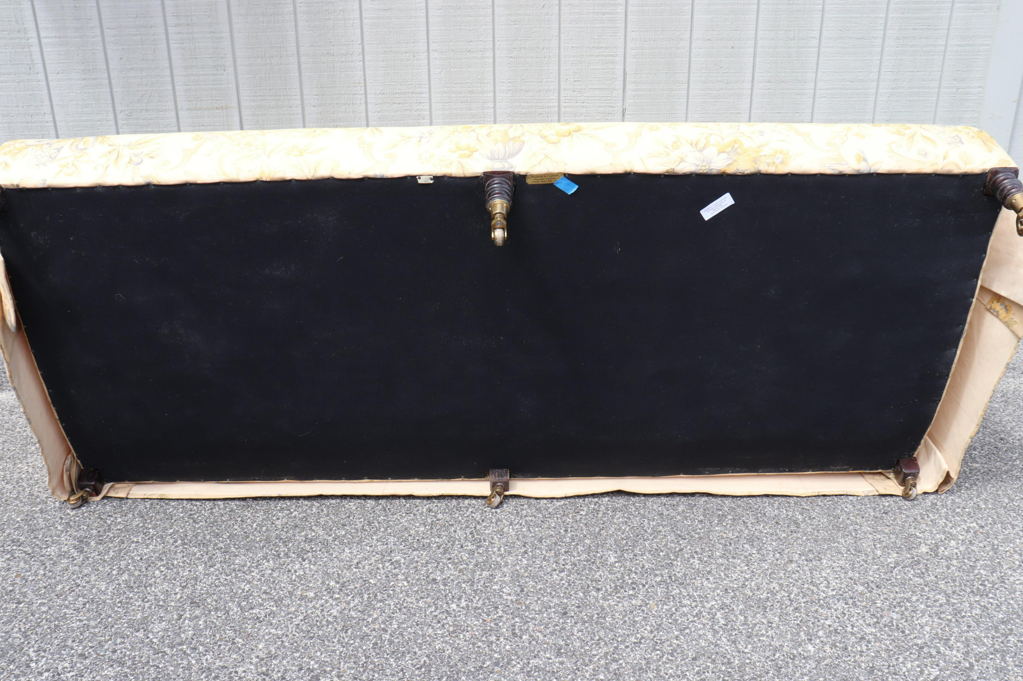 down cushions, waterfall skirt wooden legs with casters, label affixed to underside Dimensions: 32 x 82 x 40 (USPR6361)(MM)