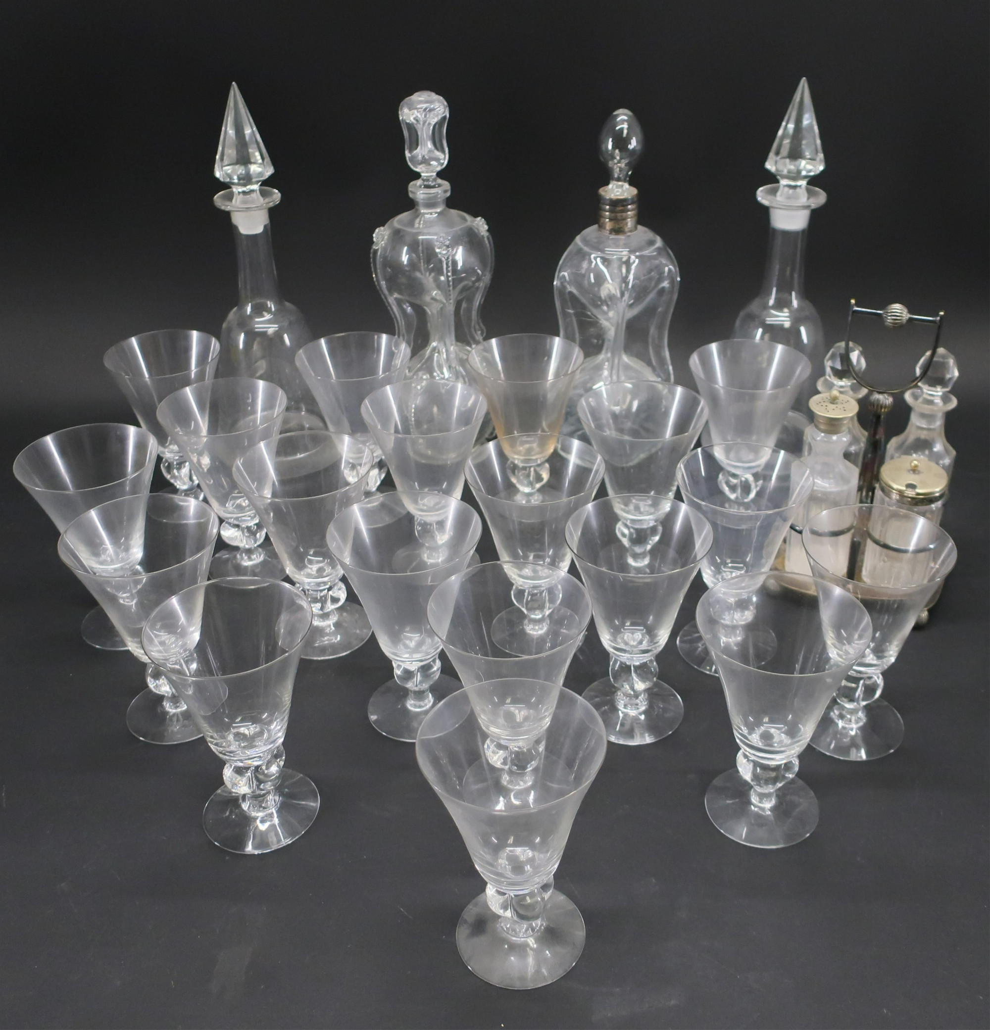 Group of Victorian Crystal Stemware (18), Decanters (4) and silverplate cruet set Dimensions: (ELB612/24)(MS)