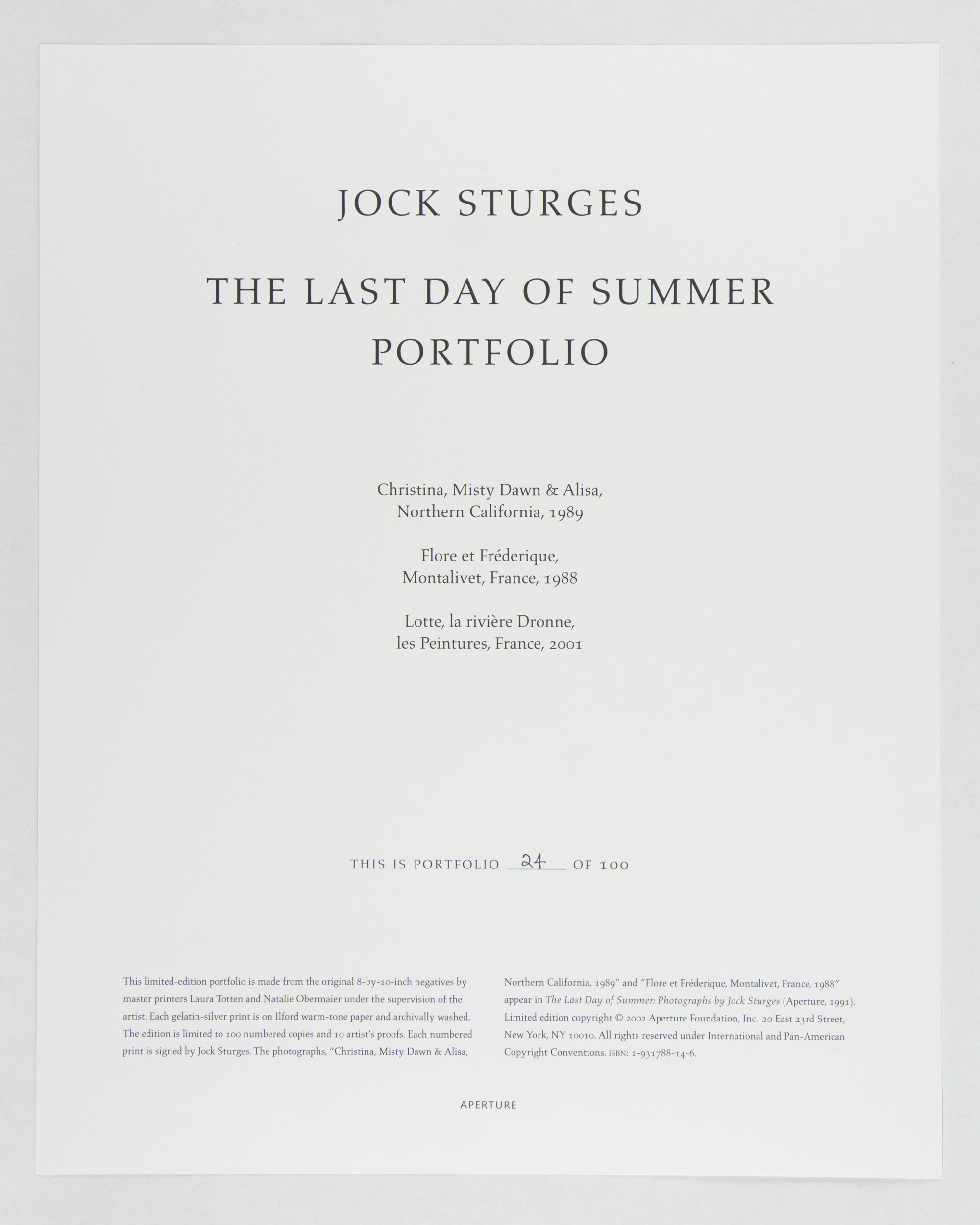 Page navigation Lot 1 The Last Day of Summer Portfolio (1992)