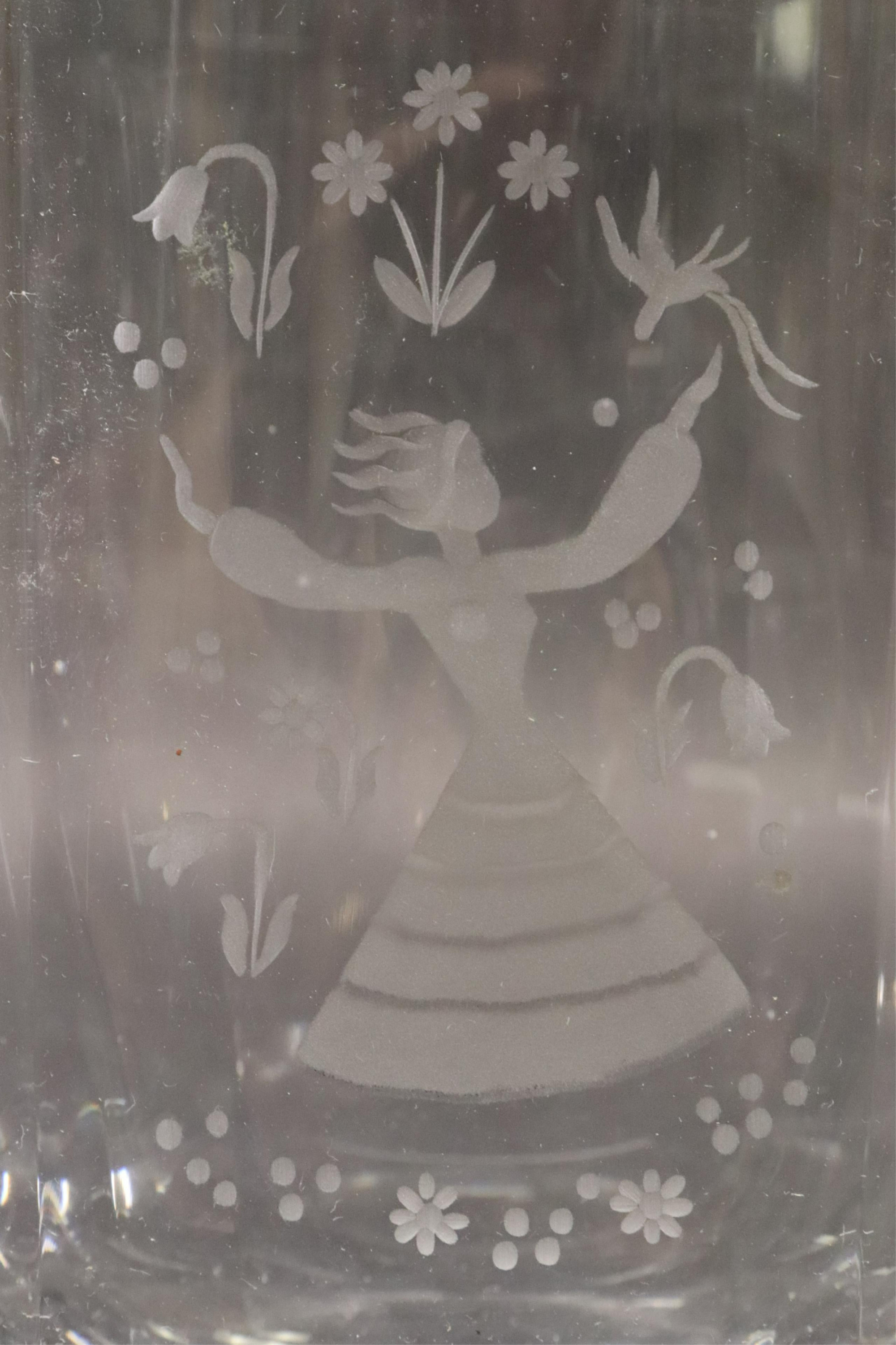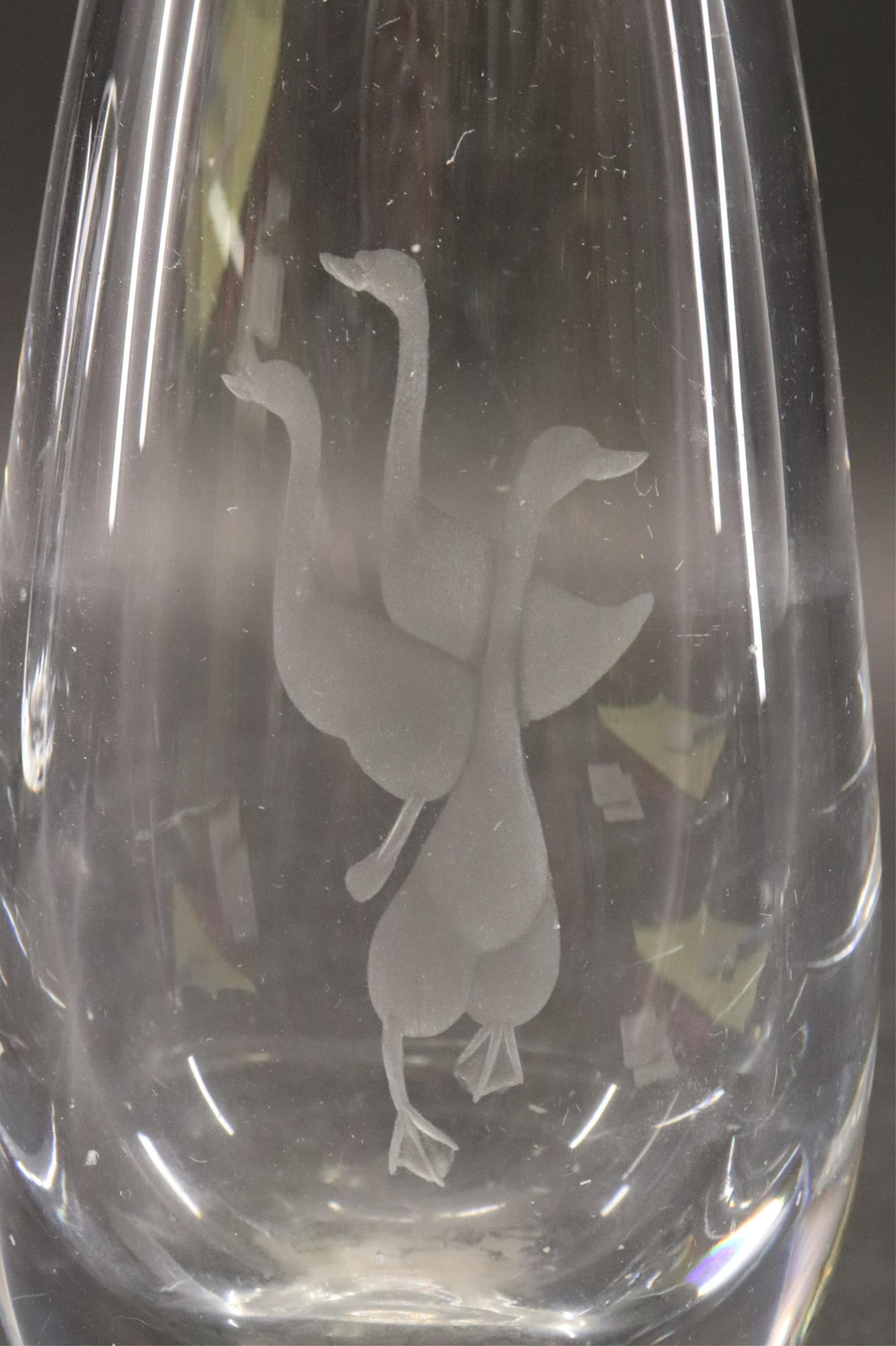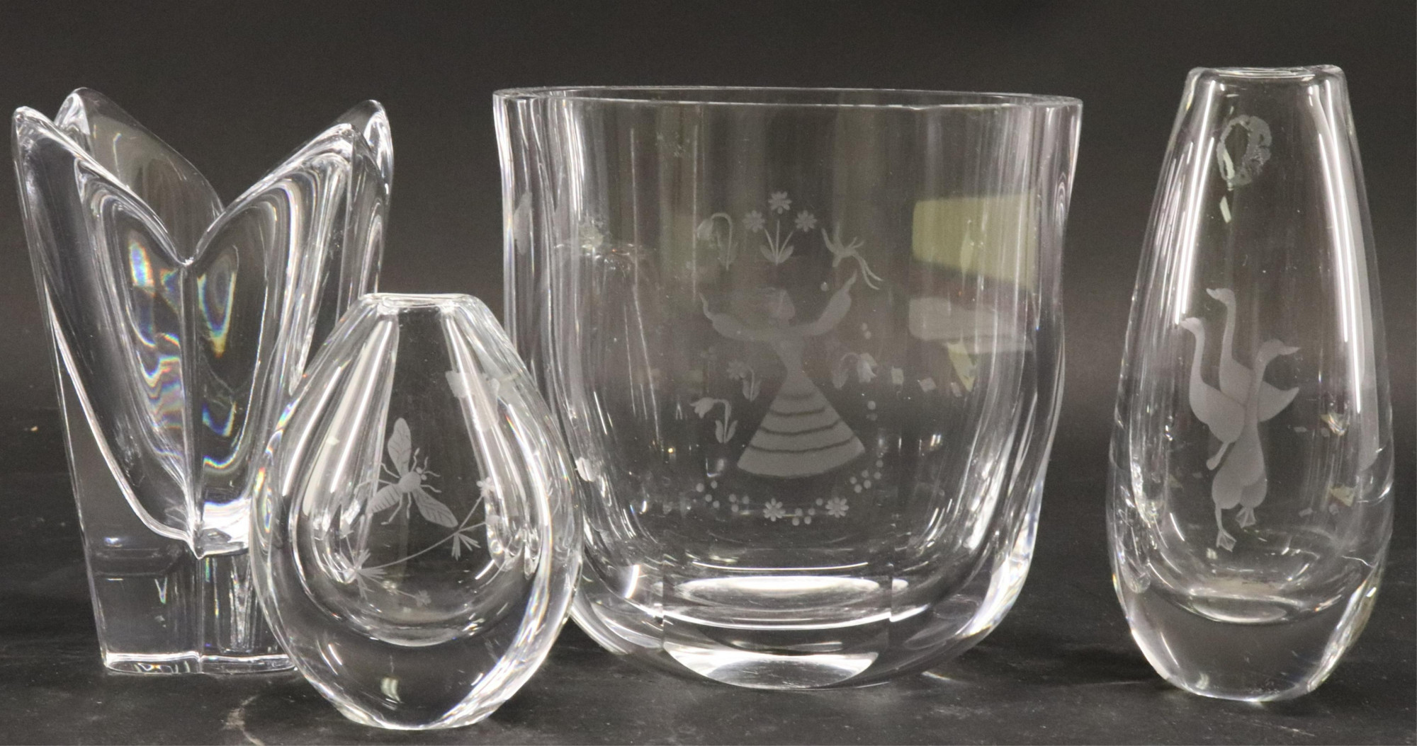 1 Kosta , 3 Orrefors Etched and Floral designed Glass Vases, all signed From a Pawling New York Home Dimensions: from 4 1/2 to 6" Tall (USPR6394/4)(MM)
