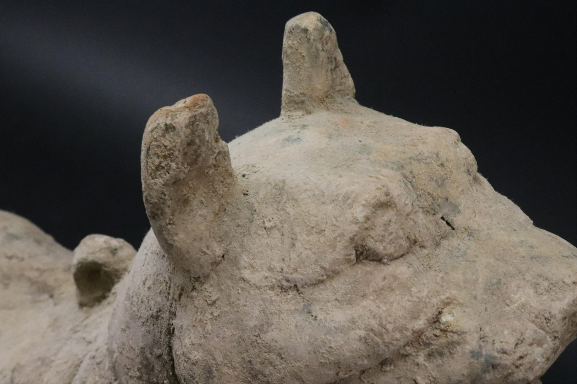 This is a wonderfully formed standing terracotta mastiff. Well proportioned and muscled showing color and ring. A very fine example of the form with only expected surface wear and minor losses. Han Dynasty (206 BCE - 220 CE). Purchased at Anthony J. Allen's Antiques, NZ.