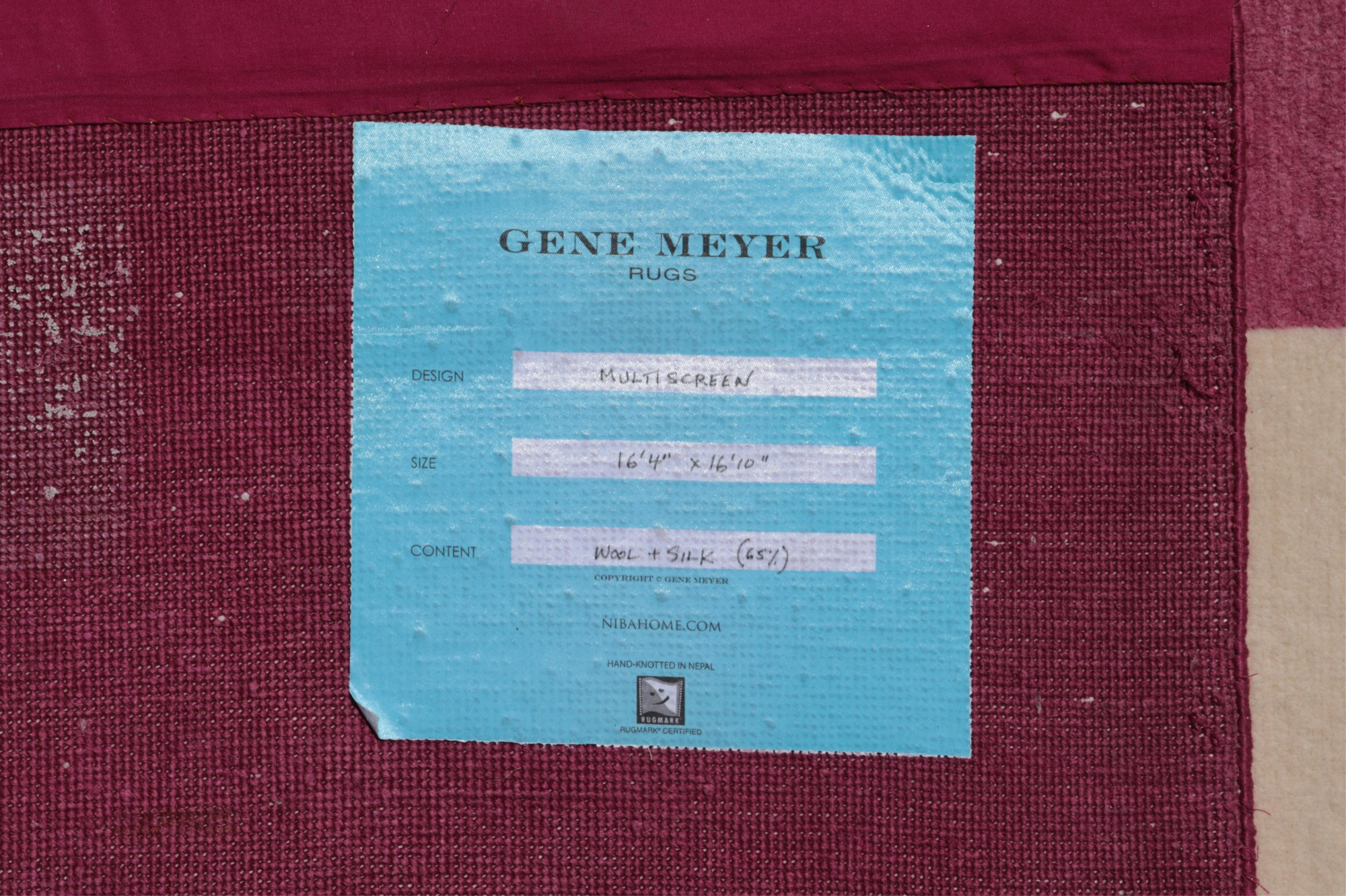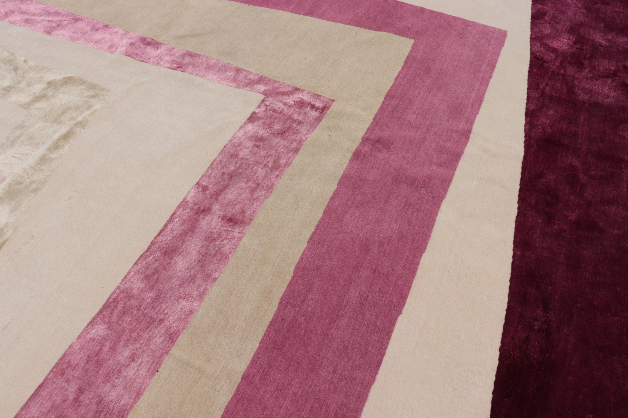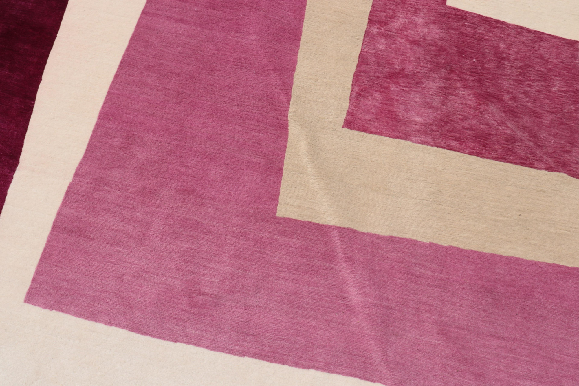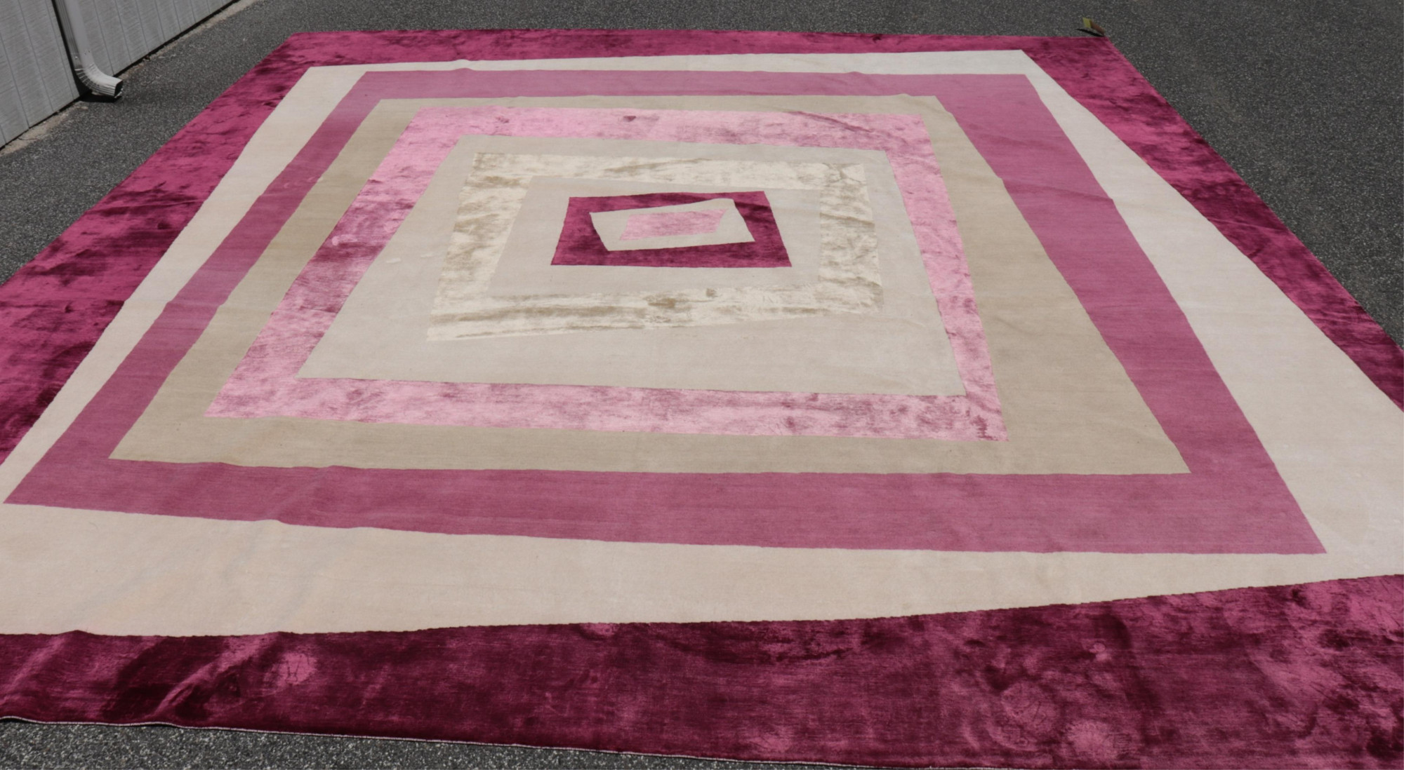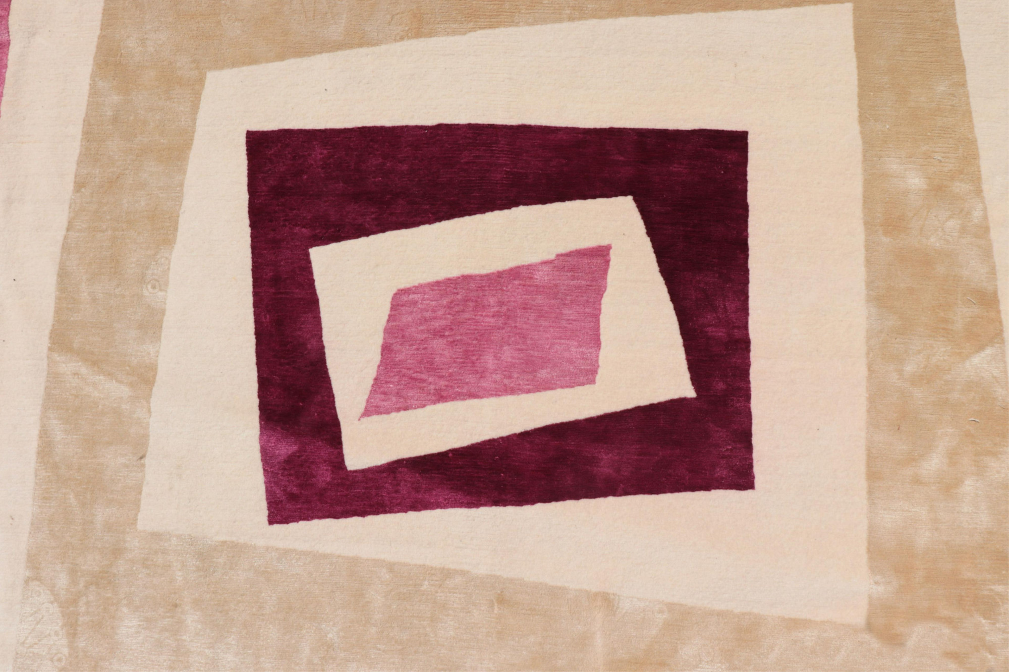 - Modern multi screen design of alternating geometric squares of Magenta/ivory. Wool/silk