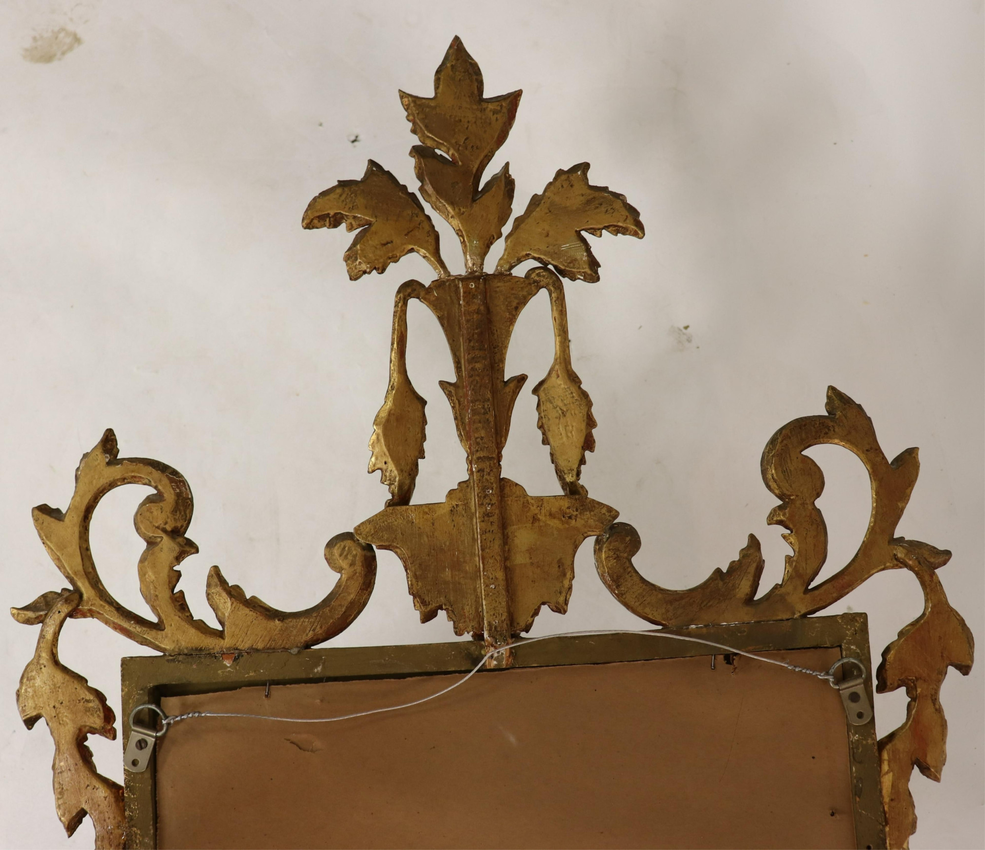 Scrolled and leafed elements. Vase on plinth with fronding/branched peak. Beveled glass mirror. Dimensions: 48.5"H x 25W (QINP6123)(JP)