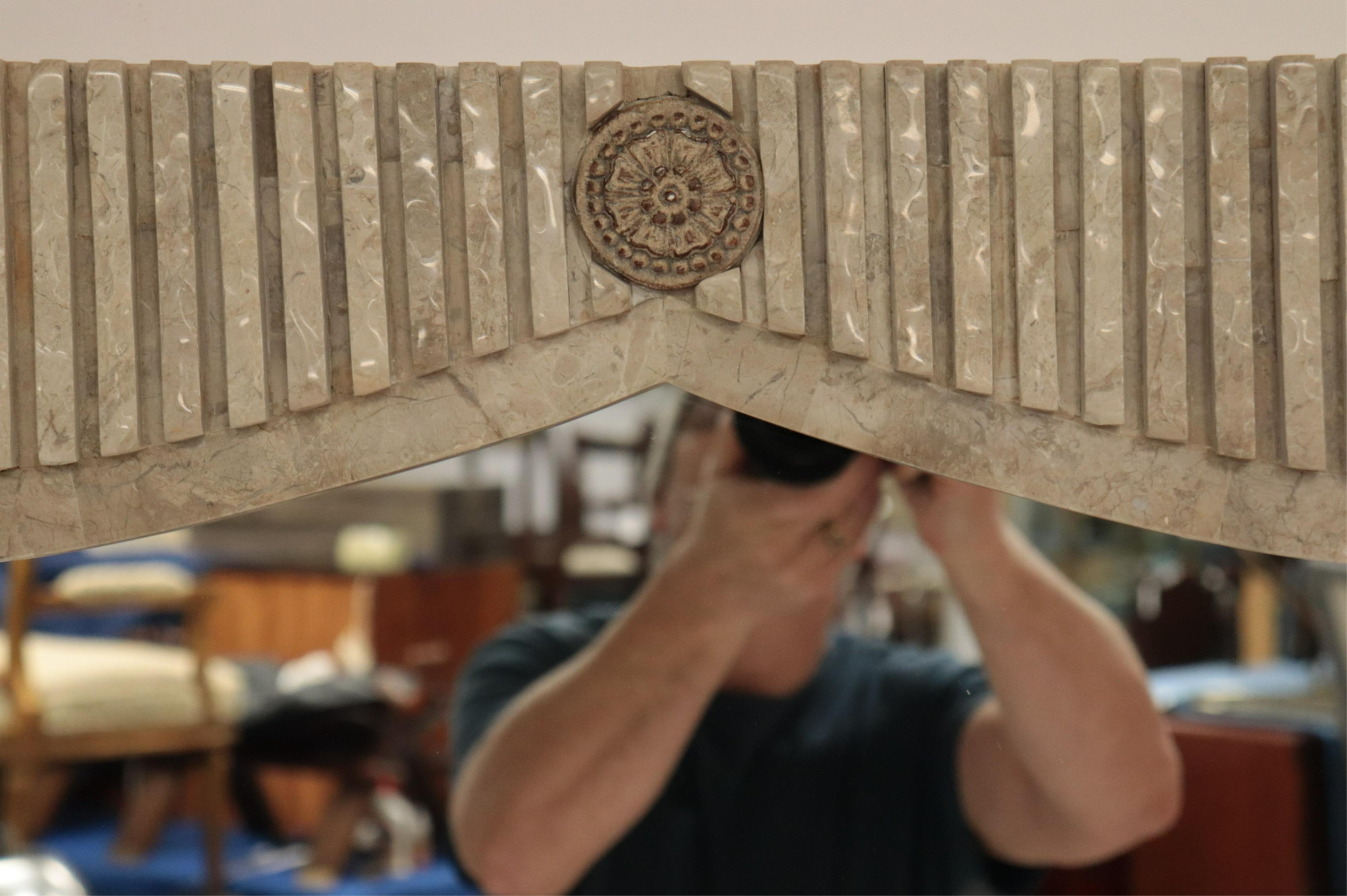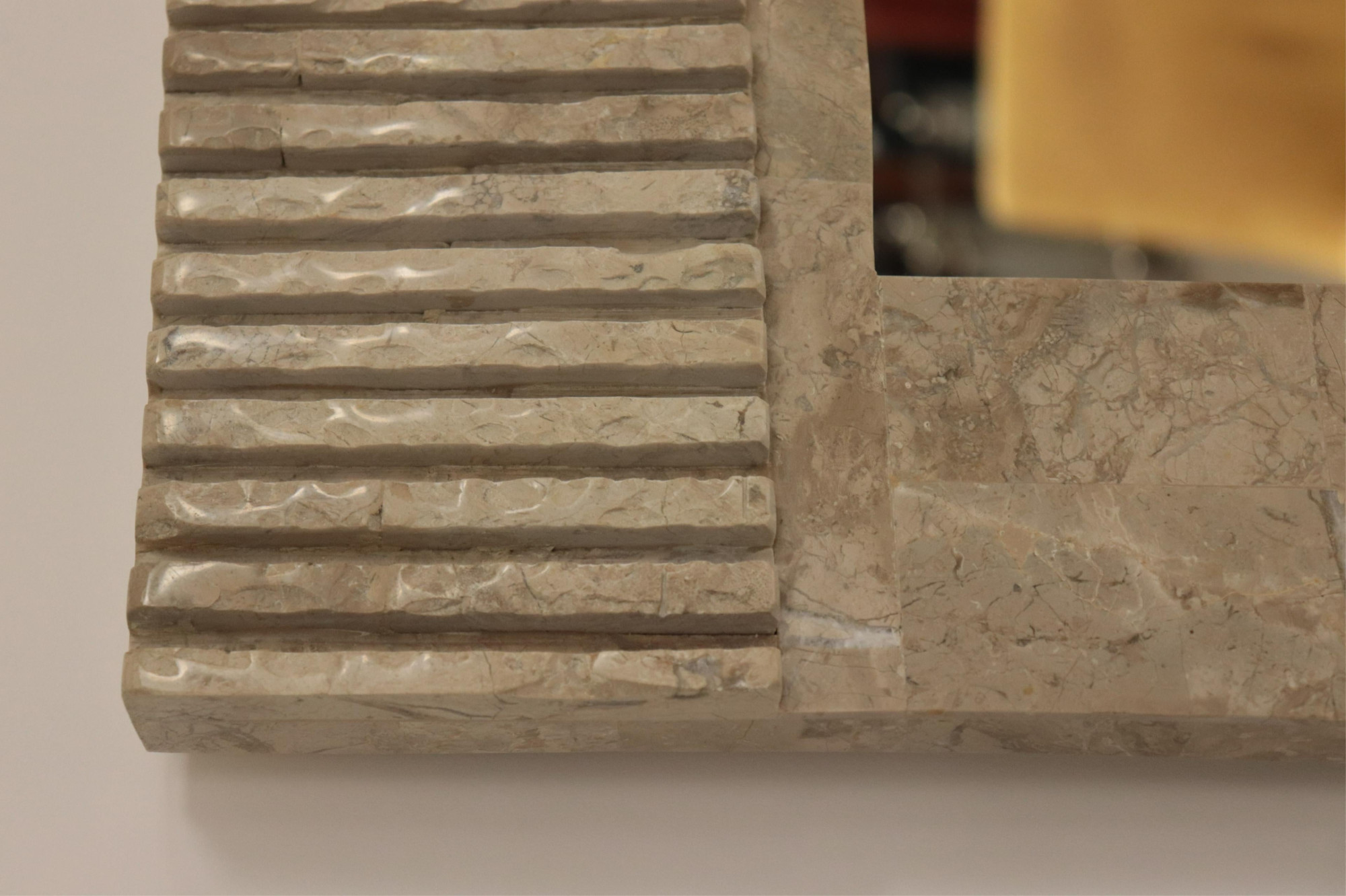 Maitland Smith Style Tessellated Cream Marble Mirror Dimensions: 50" H x 34" W (BIRD358)(MS)
