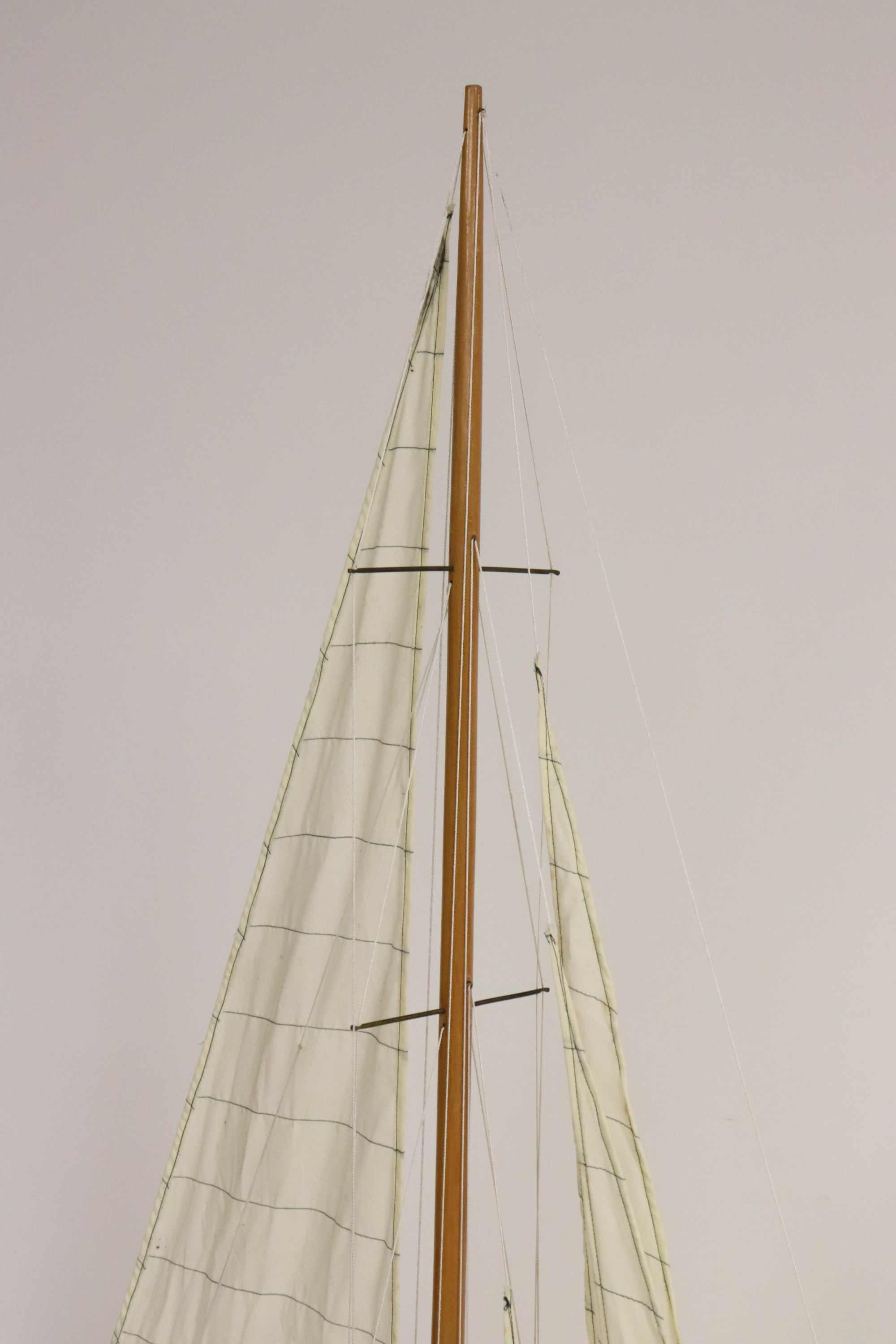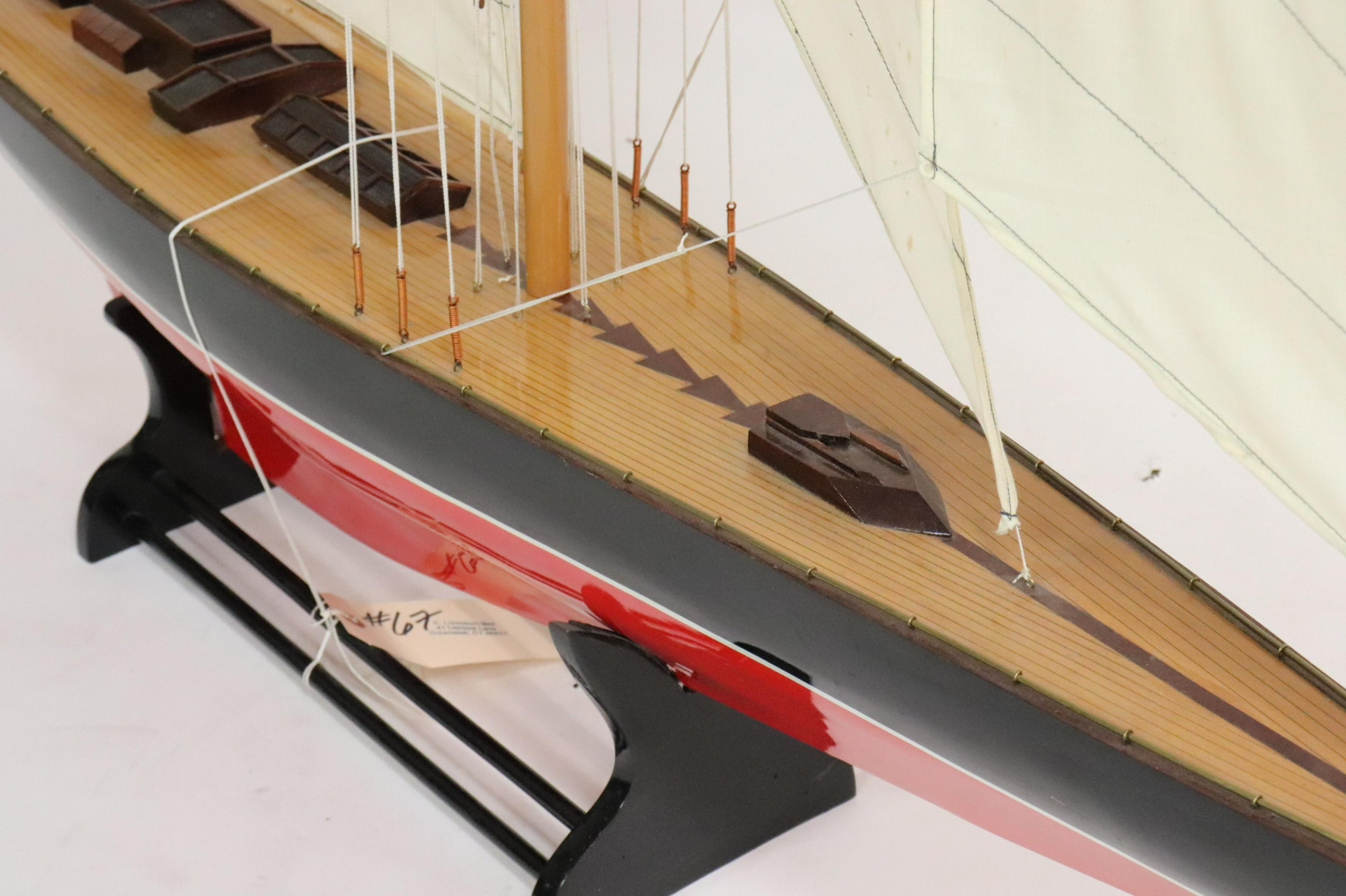 Model of a Red & Black Painted Sailboat on Stand Dimensions: 72 1/4" H including stand, 58" (ELB594)(MS)