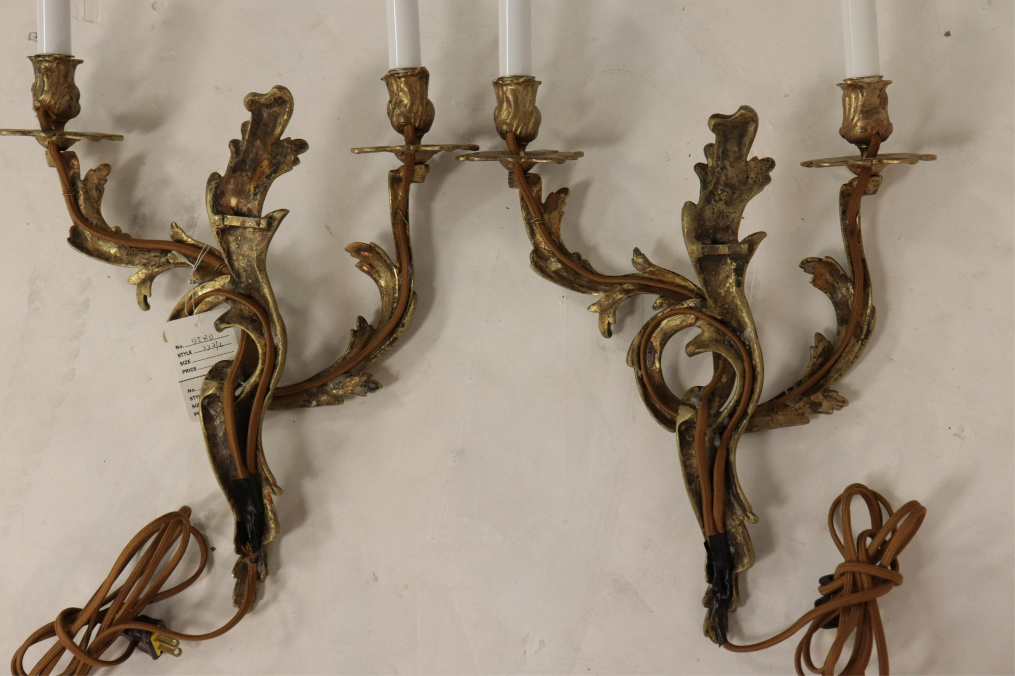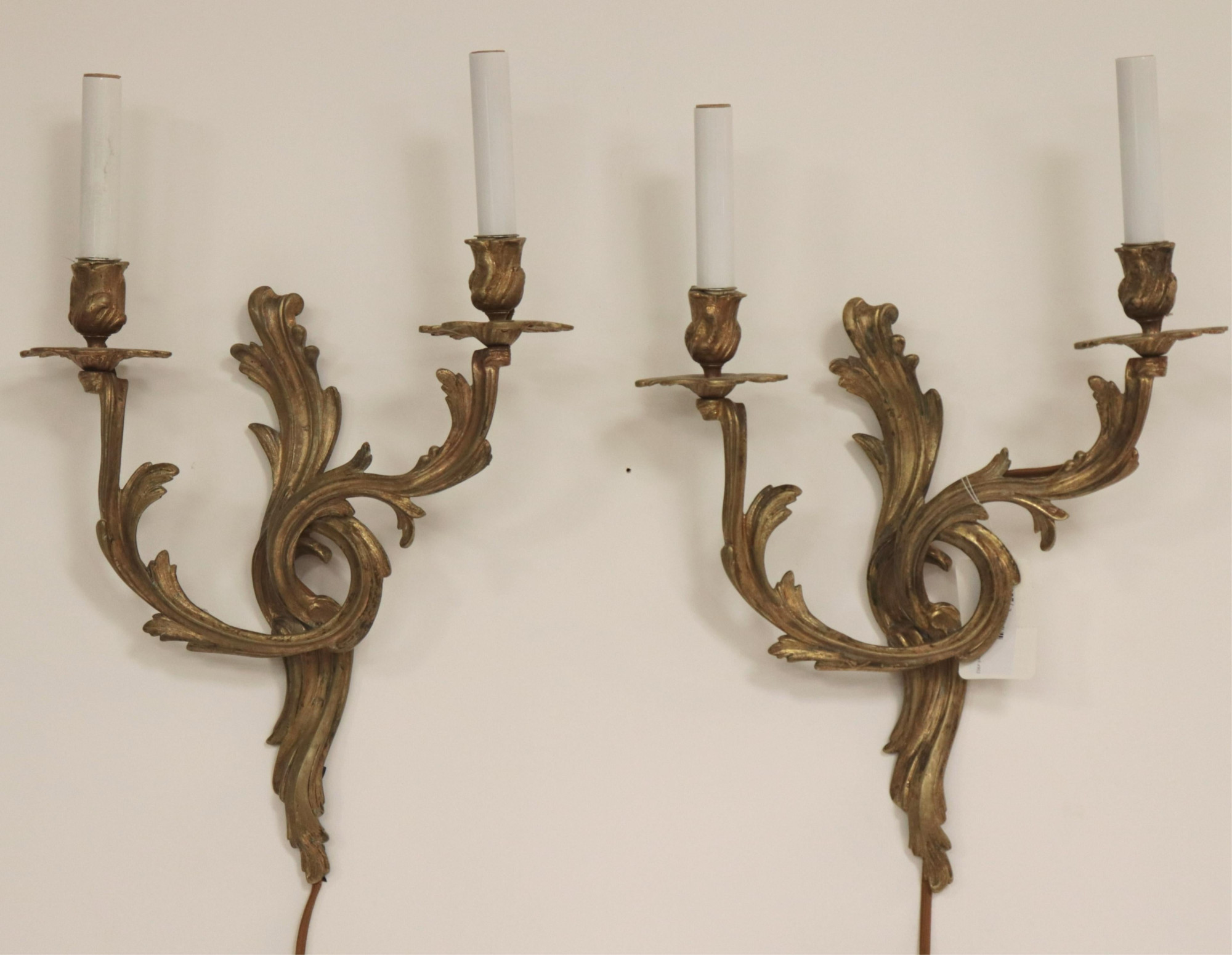 Pair Louis XV Style Brass 2-Light Sconces (2 pc.) Dimensions: 20" H x 12 1/4" W (BIRD337/2)(MS)