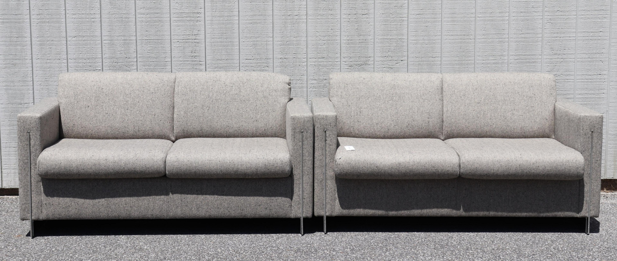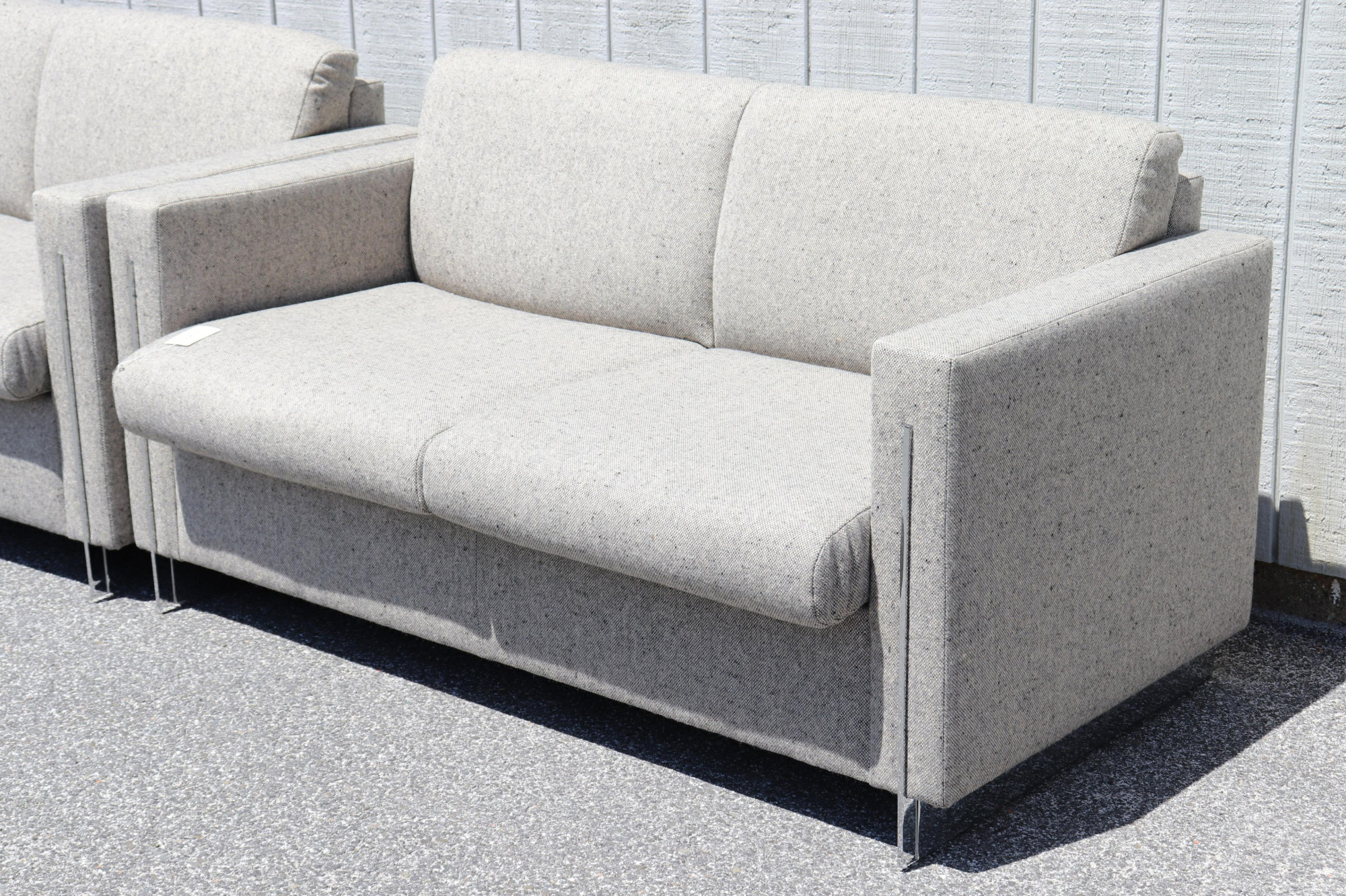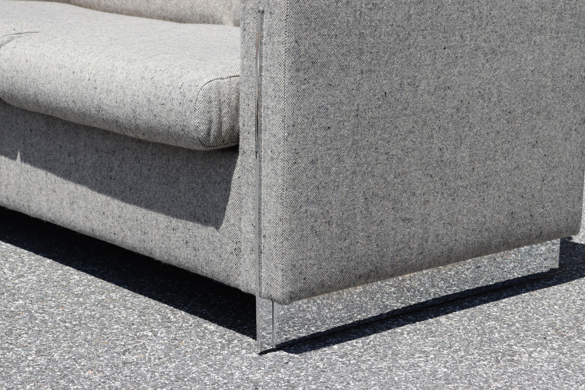 Polished chrome legs. Upholstered in a multi tone tweed fabric. Dimensions: 58.5 w by 27.5 h by 29.5 d (TWTO732/2)(scl)