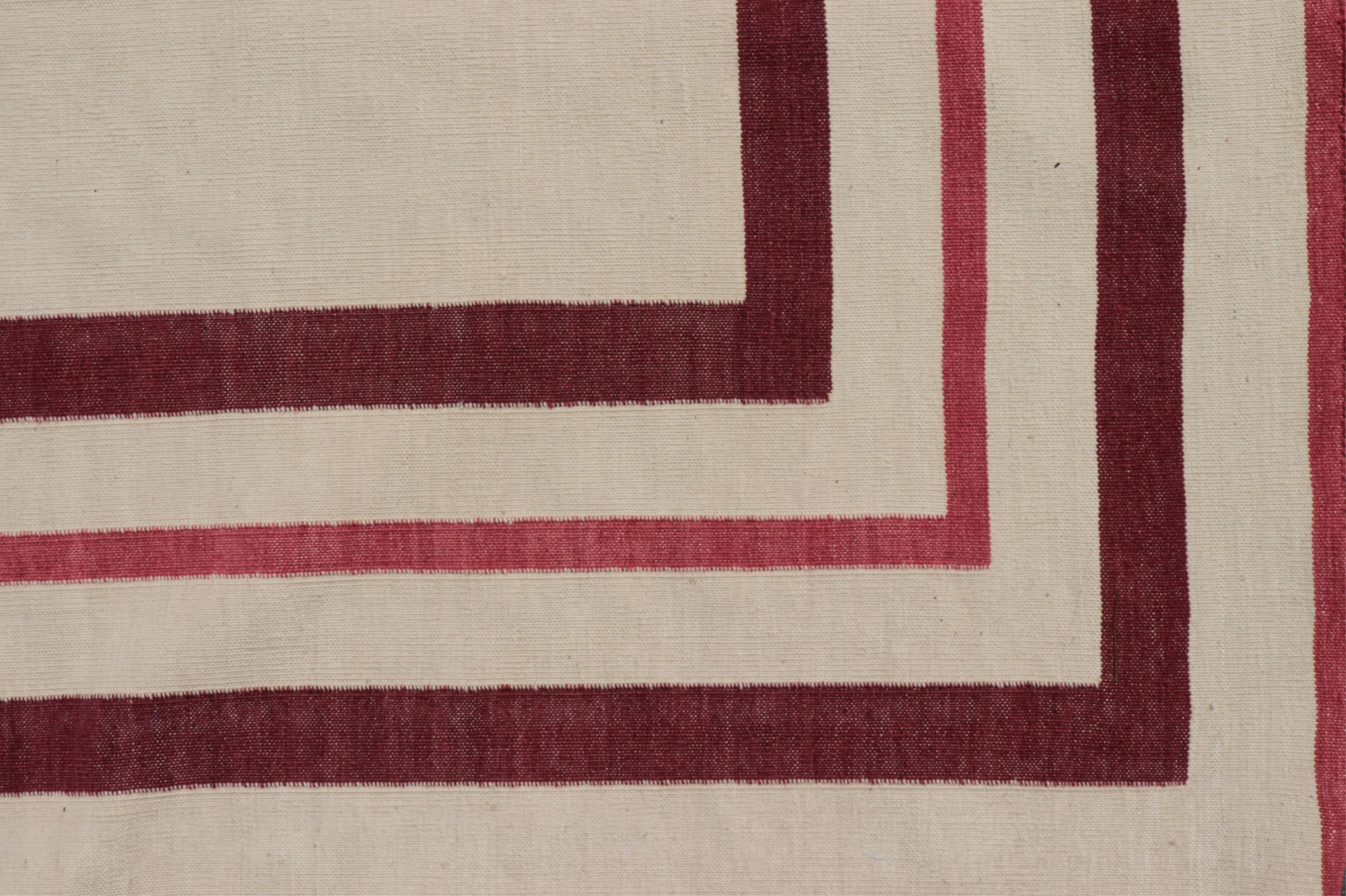Near identical sizes, alternating burgandy/cream stripes. Dimensions: 3'7" x 10'8", and 3'2" x 10' (AHAN5340/2)(GO)
