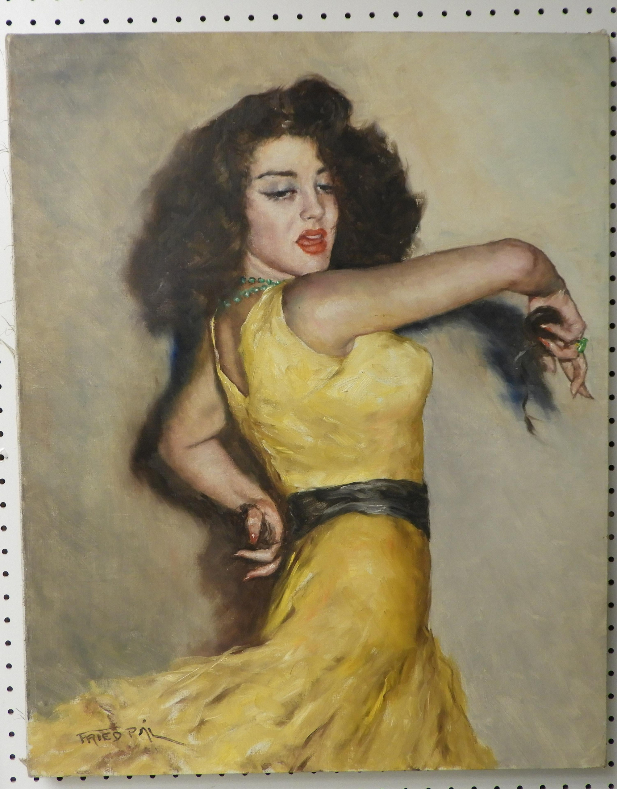 Pal Fried (Hungarian American, 1893 - 1976) Carmencita, oil on canvas of dancer in yellow dress. Signed lower left. Property from a fourth generation gallery, NYC Dimensions: 30 x 24" unframed (HEAR112)(EL)