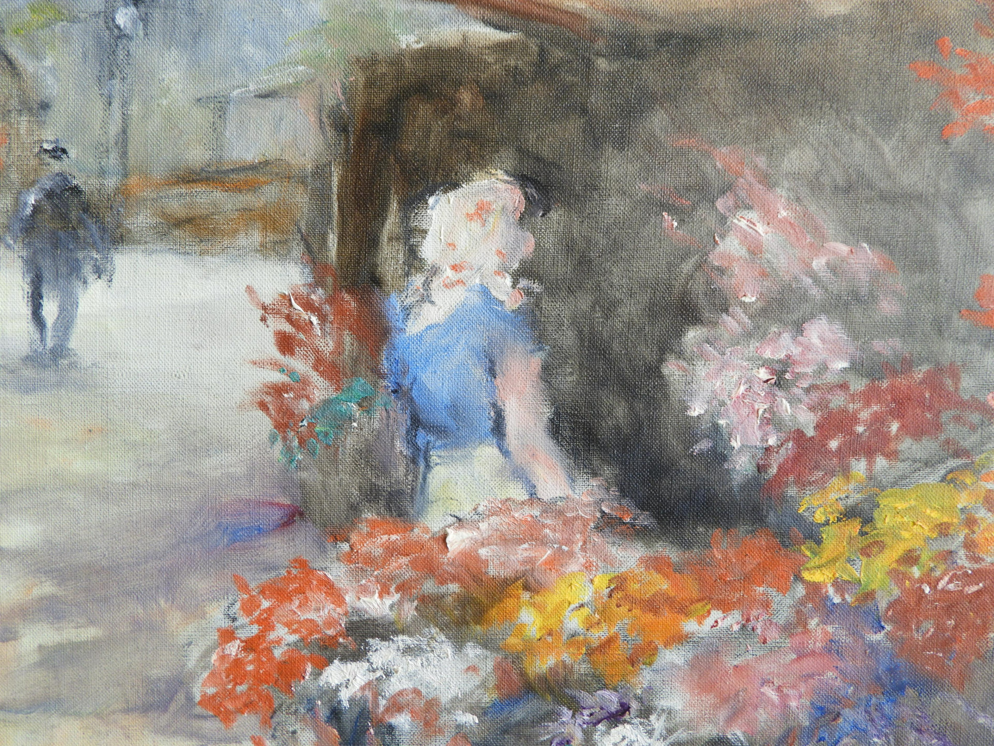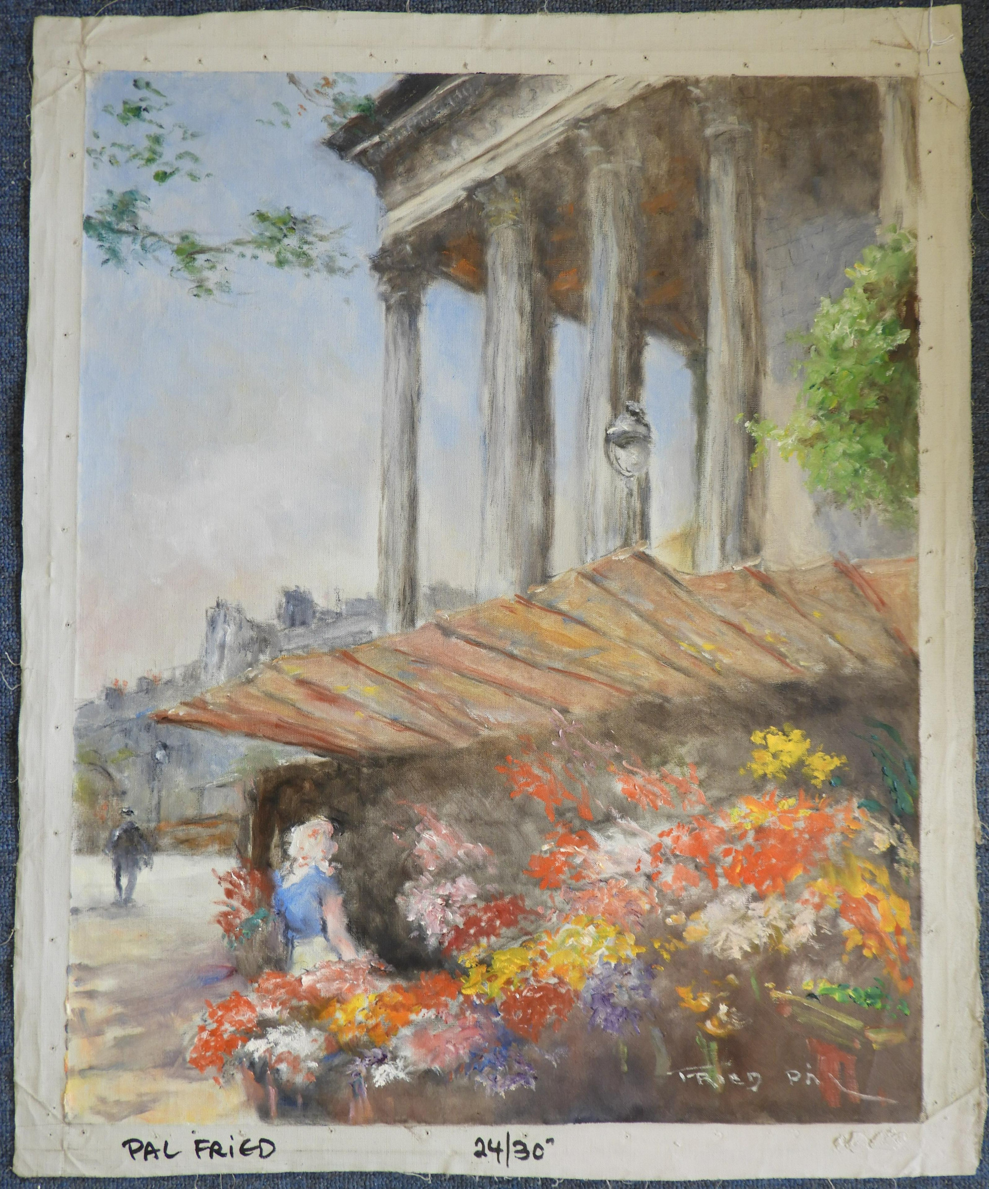 Pal Fried (Hungarian American, 1893 - 1976) Oil on canvas depicting flower market by Madeleine in Paris. Signed lower right. Property from a fourth generation gallery, NYC Dimensions: 30 x 24" unframed (HEAR113)(EL)