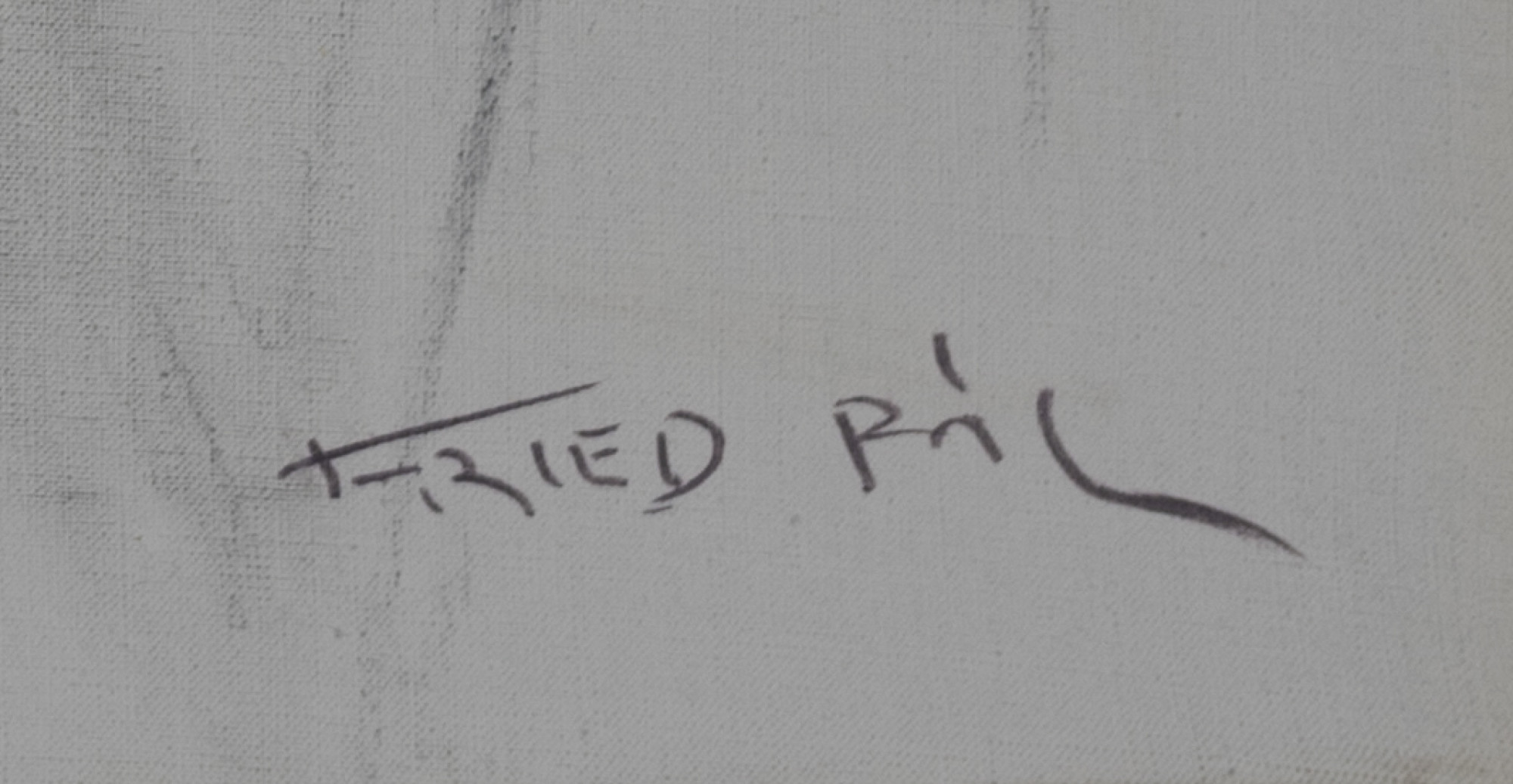 very good condition, medium is well attached to the support (canvas has been removed from the stretcher bars)