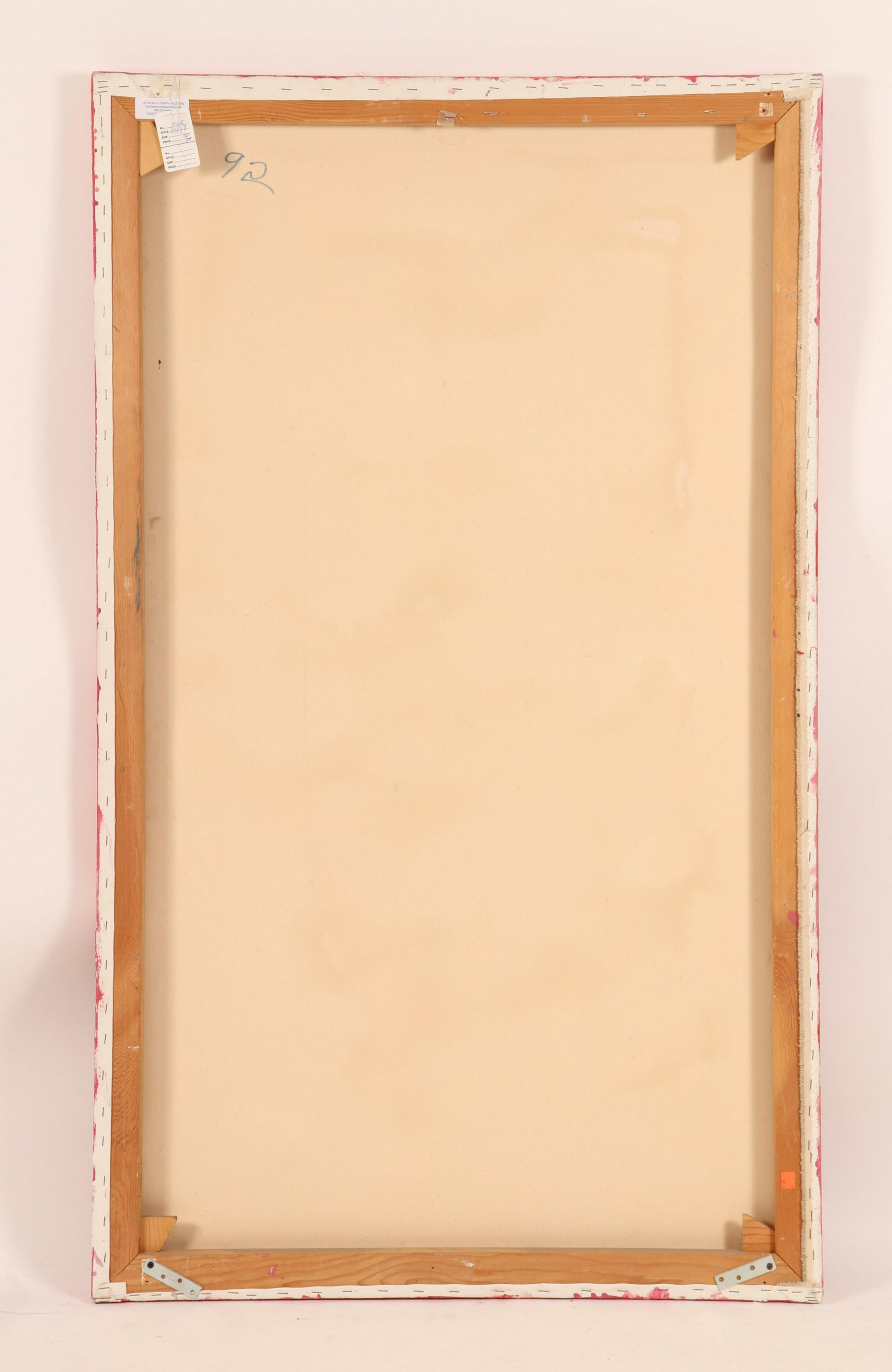 Paolo Corvino (American, 1930-2015) Fresco style mixed media painting in a red. On stretchers. Textured surface, raised and filled discs. "54" on painting. Signed, dated (81) LR. Dimensions: 60"H x 36 (PCOR6468)(JP)See More