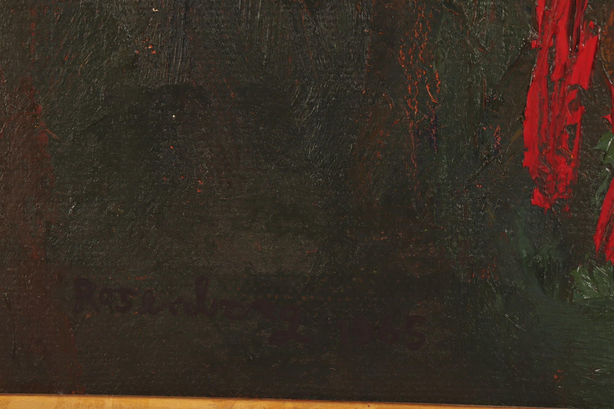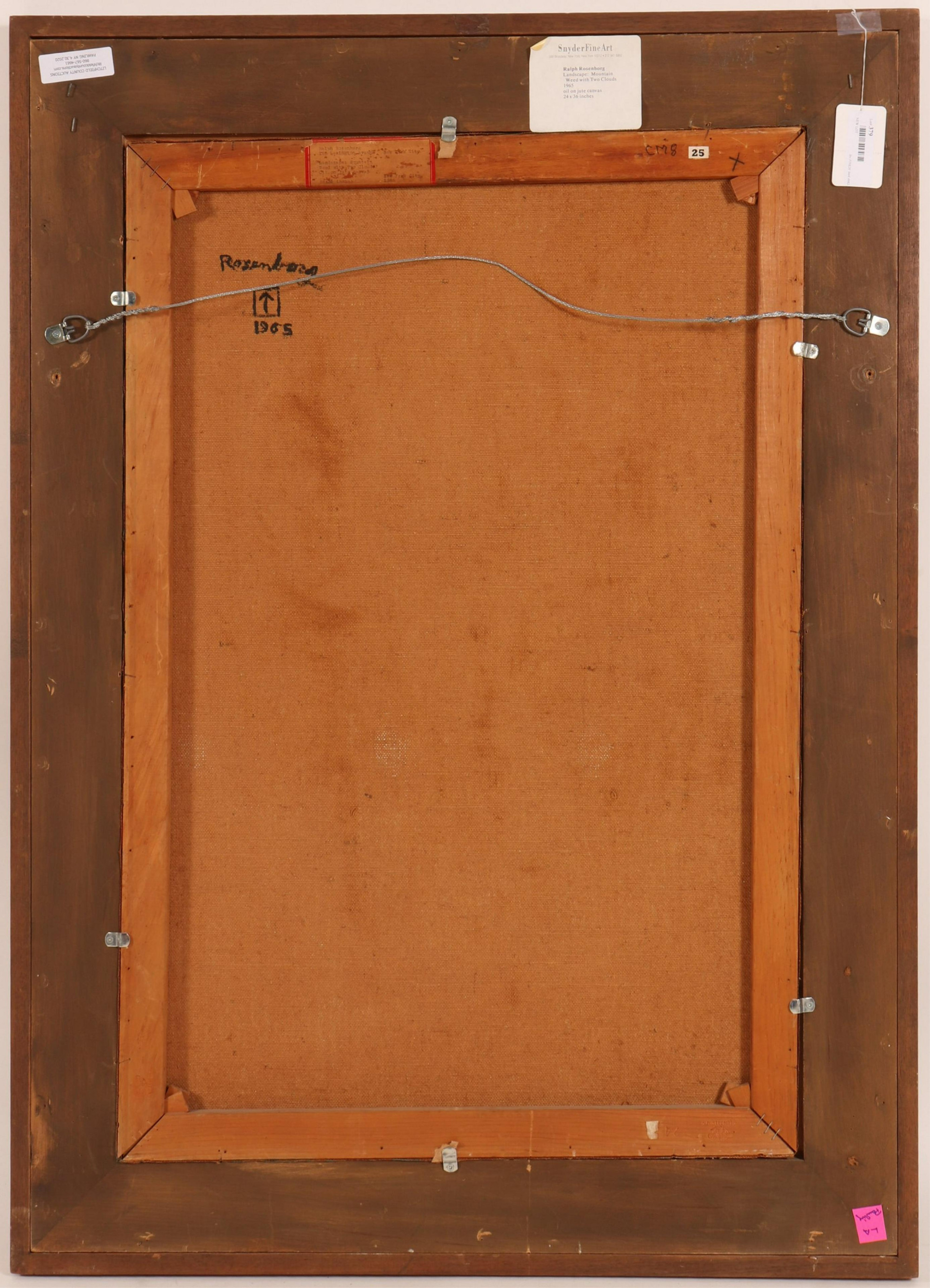 Ralph Rosenborg (American, 1913-1992) Mountain Weed with Two Clouds, oil on jute canvas, both canvas and verso signed, artists label and Snyder Fine Art gallery label, painting dated 1965 From a Pawling New York Home Dimensions: 24 x 36, framed 44 1/2 x 32 1/2 (USPR6379)(MM)See More