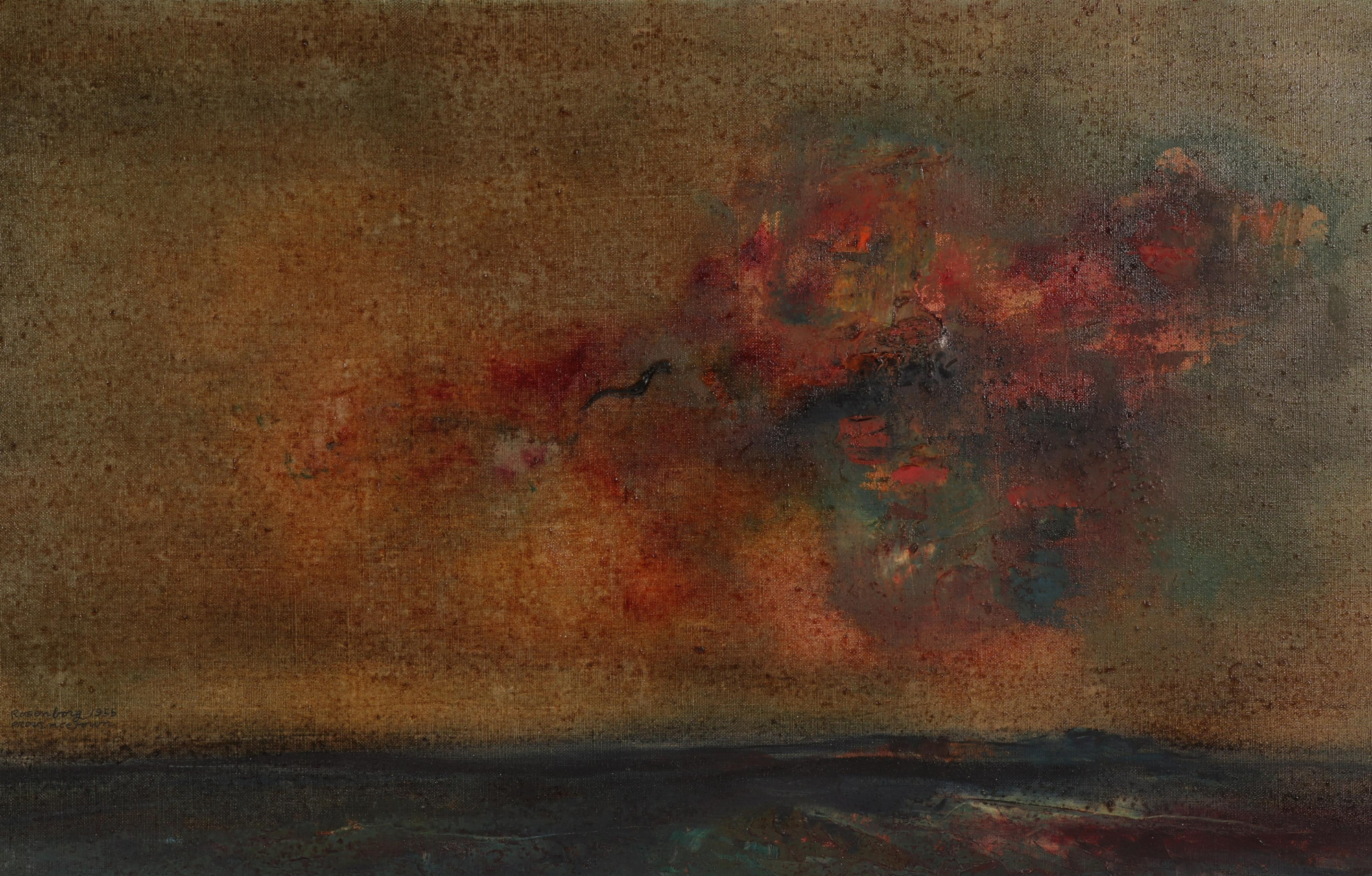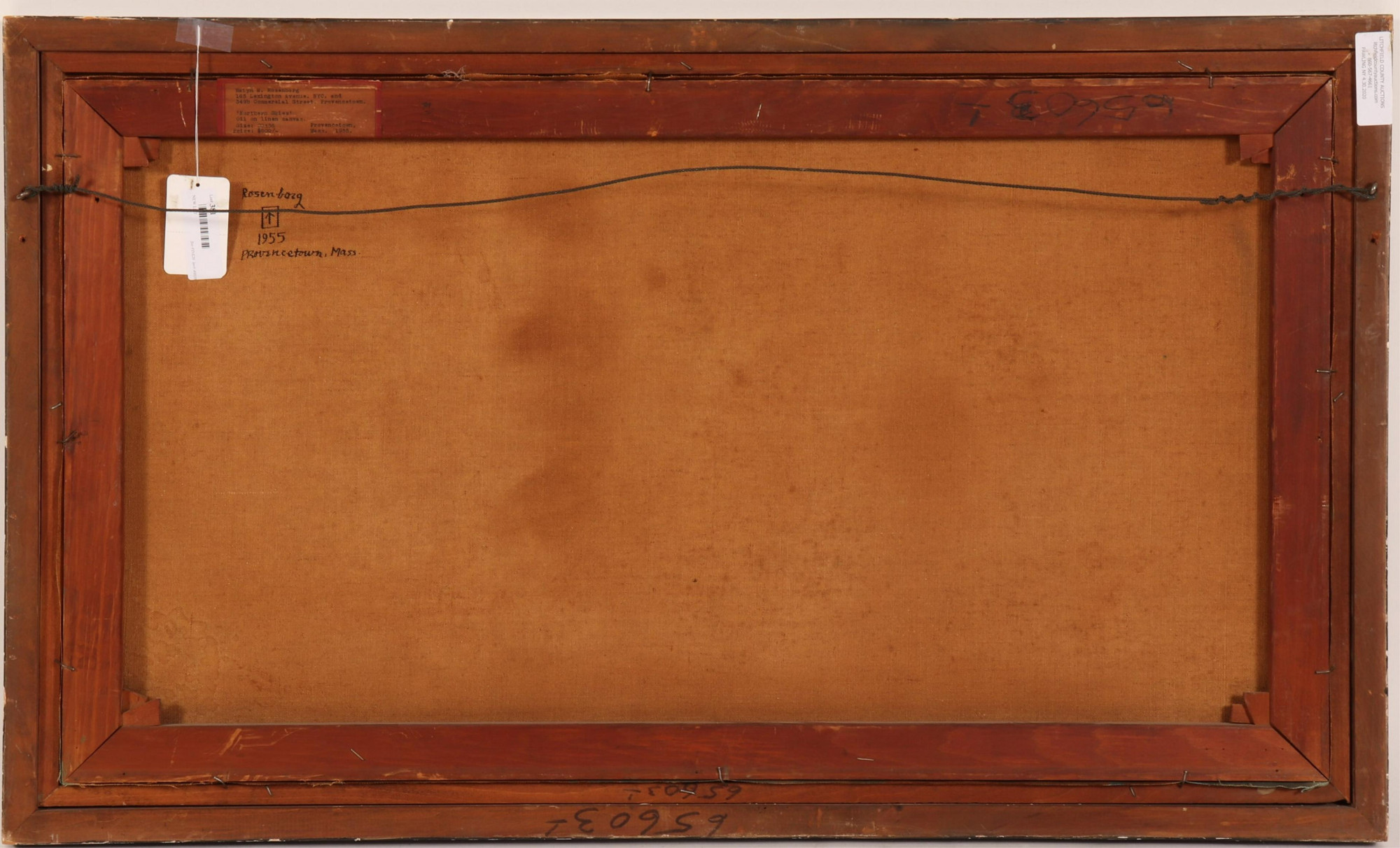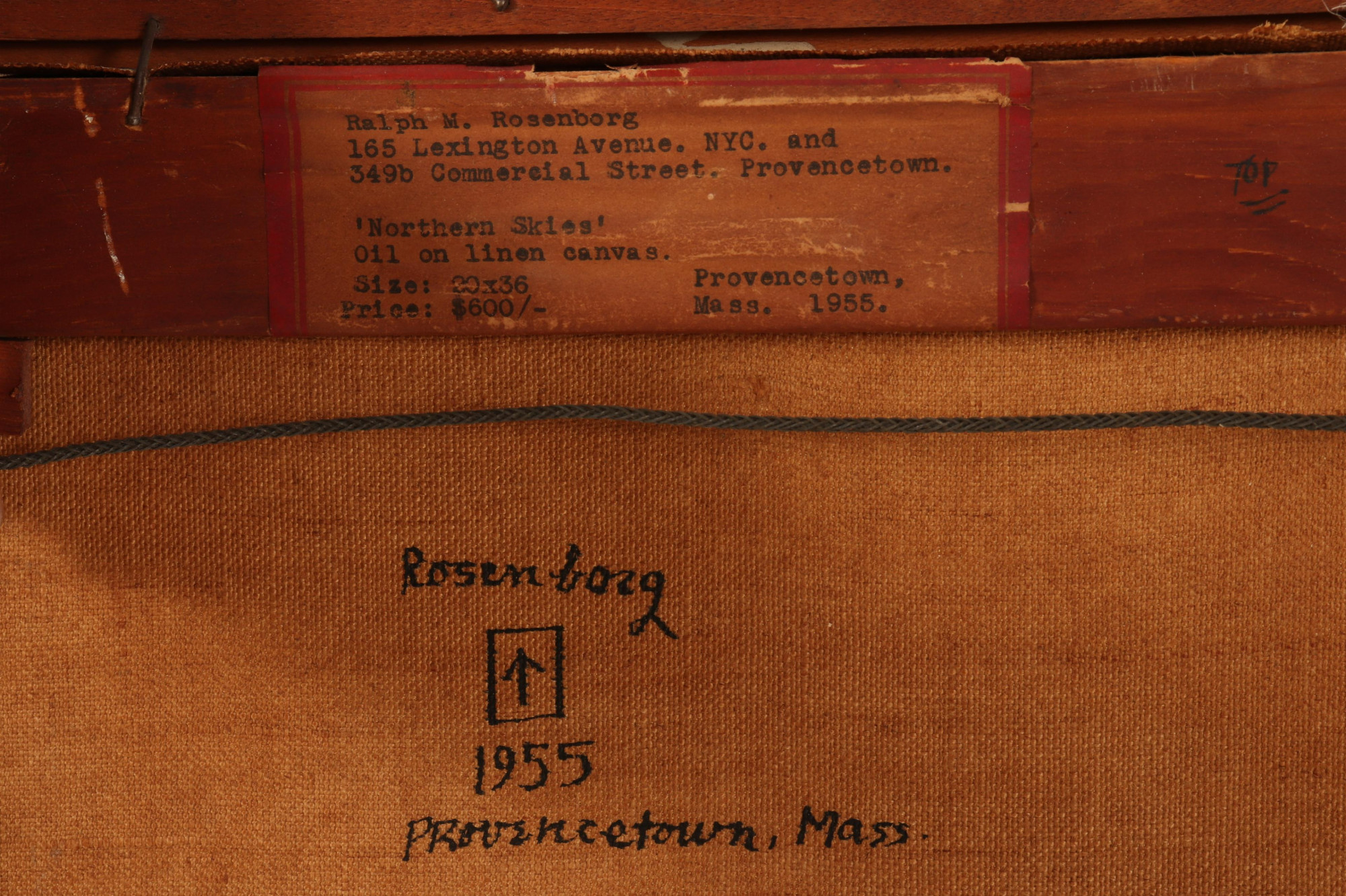 Ralph Rosenborg (American, 1913-1992) Northern Skies, oil on canvas, both canvas and artists verso signed ,verso artists label, titled, dated and signed From a Pawling New York Home Dimensions: 20 x 36, framed 24 x 40 (USPR6381)(MM)See More