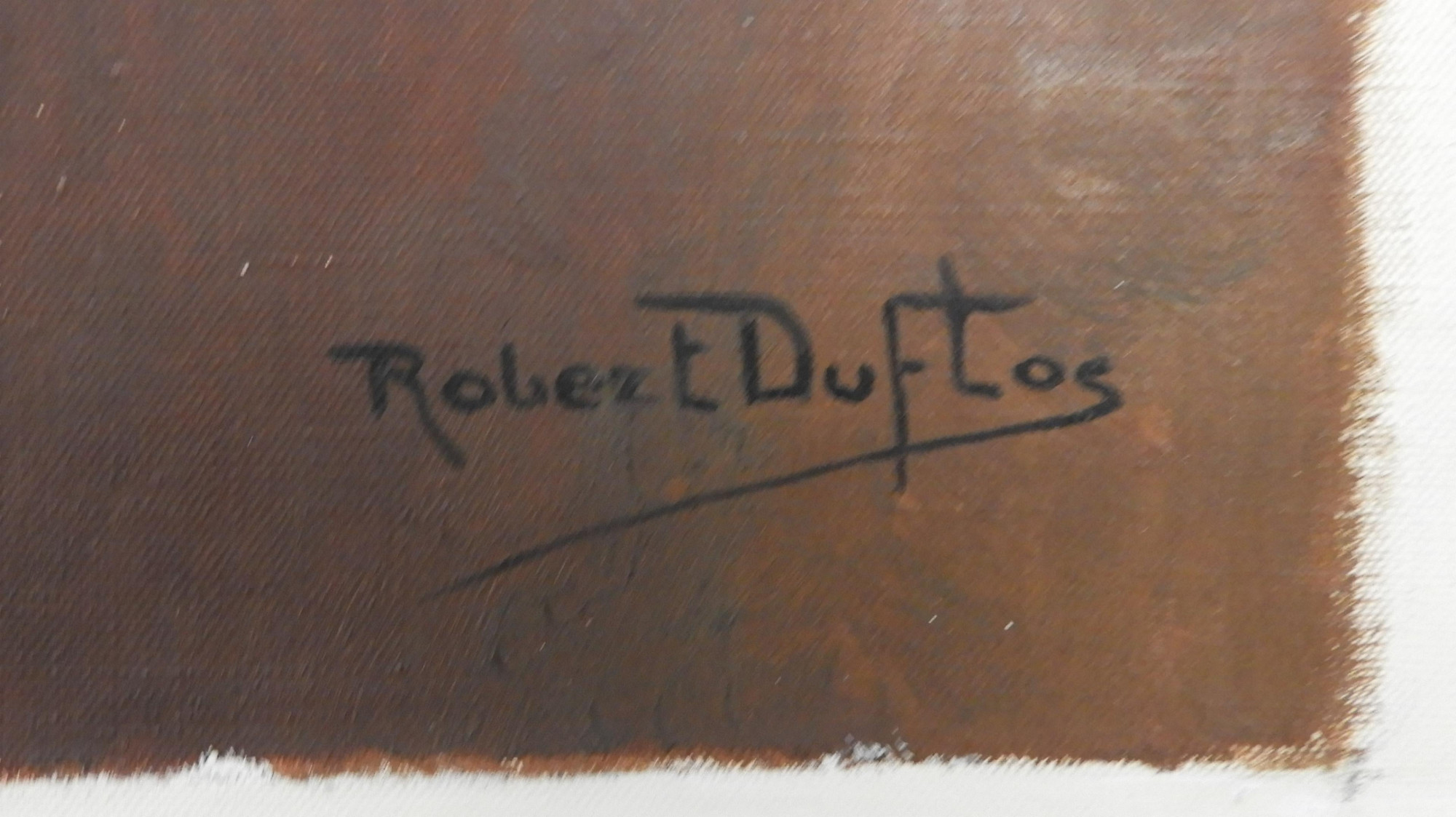 Robert Louis Raymond Duflos (French, 1898 - ?) Oil on canvas depicting nude female sitting on bed. Signed lower right & verso. Property from a fourth generation gallery, NYC Dimensions: 21.5 x 18" unstretched (HEAR12)(EL)