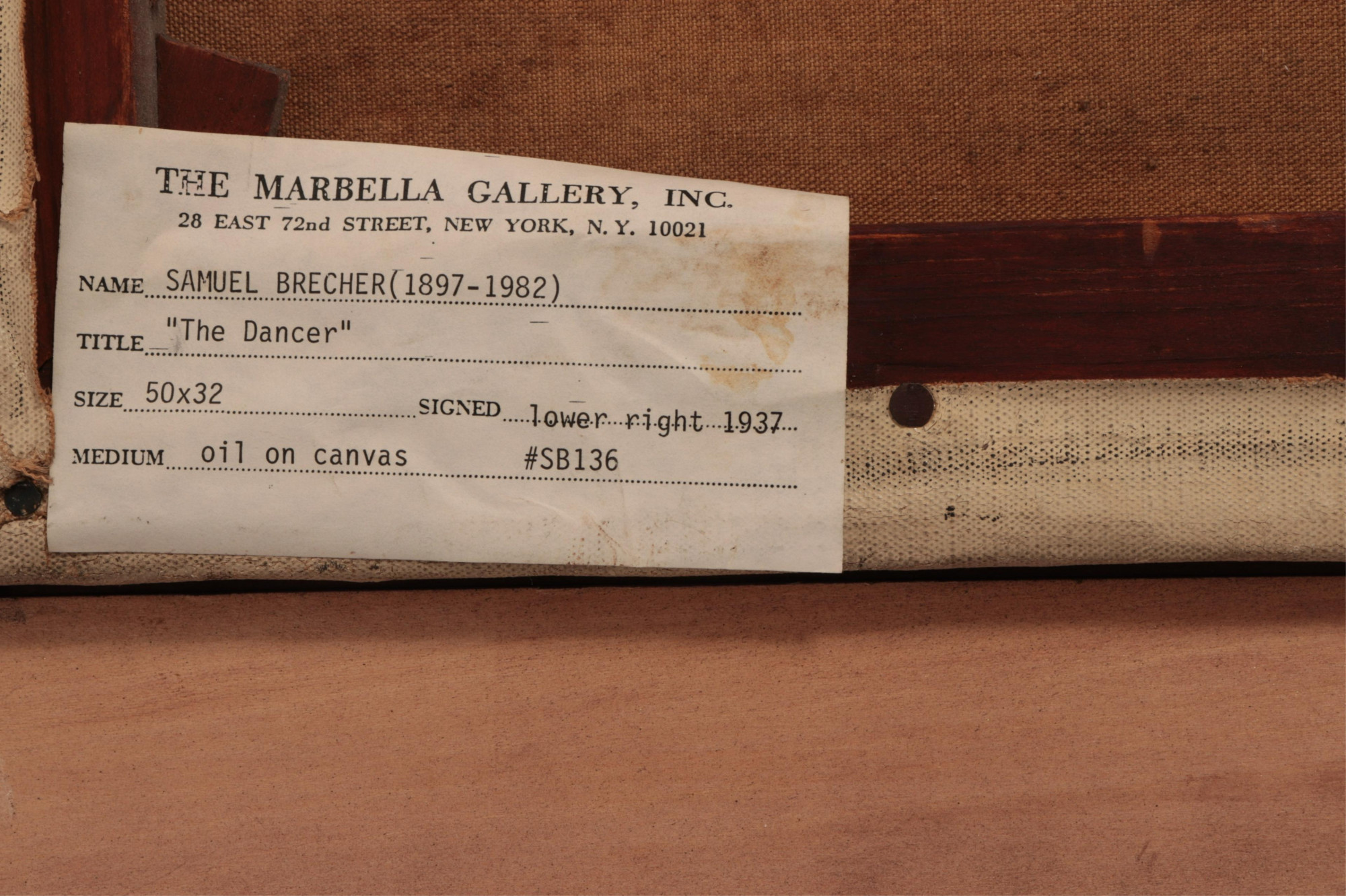 Samuel Brecher, 1897-1982, "The Dancer", circa 1937, Oil on Canvas, signed lower right. Provenance: Marbella Gallery NYC Dimensions: 50" x 32", frame 58" x 40" (MBAX2486)(WT)