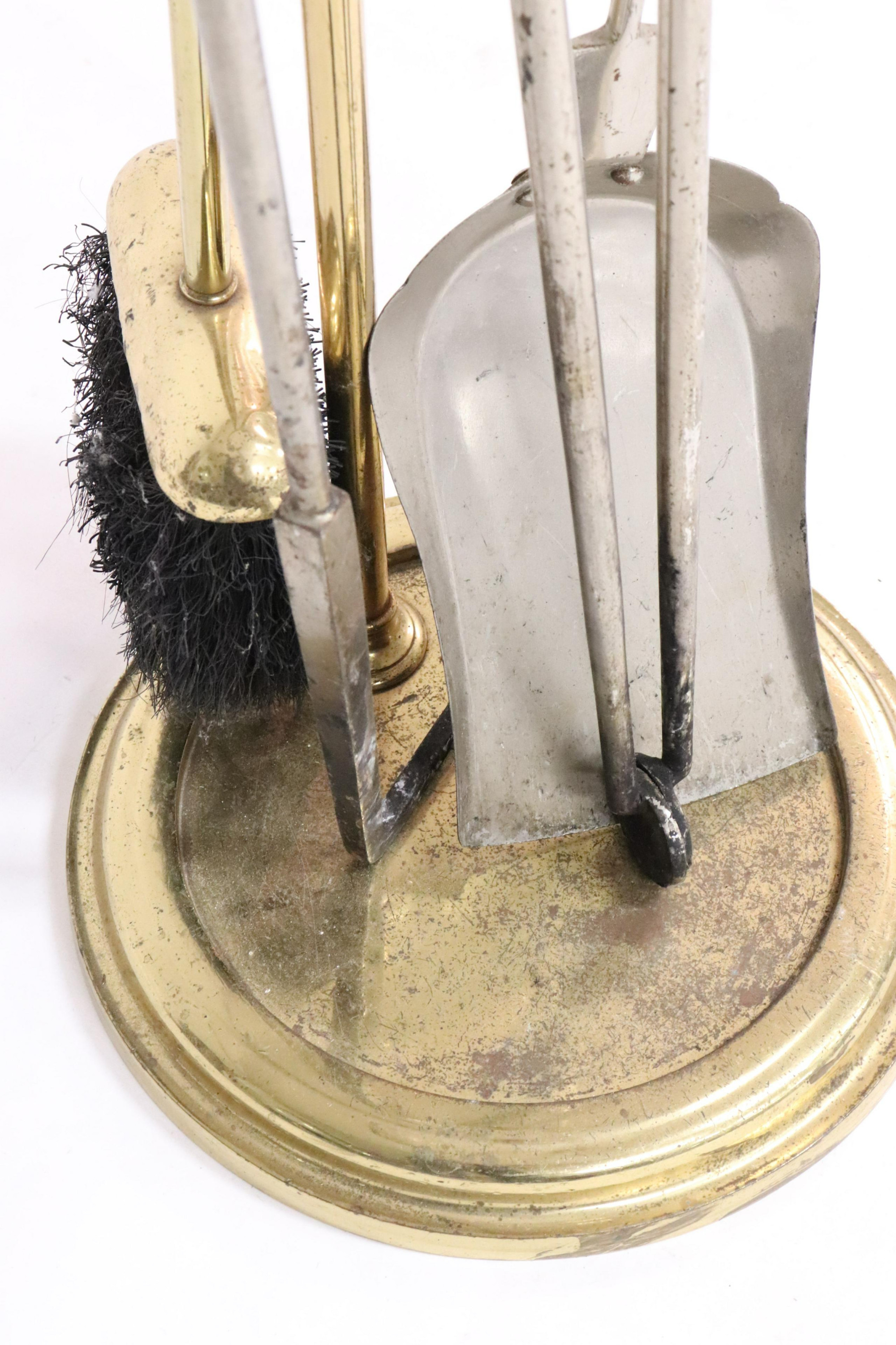 Set of Colonial Style Brass & Steel Fire Tools Dimensions: The stand 27 3/4" H (ELB517)(MS)