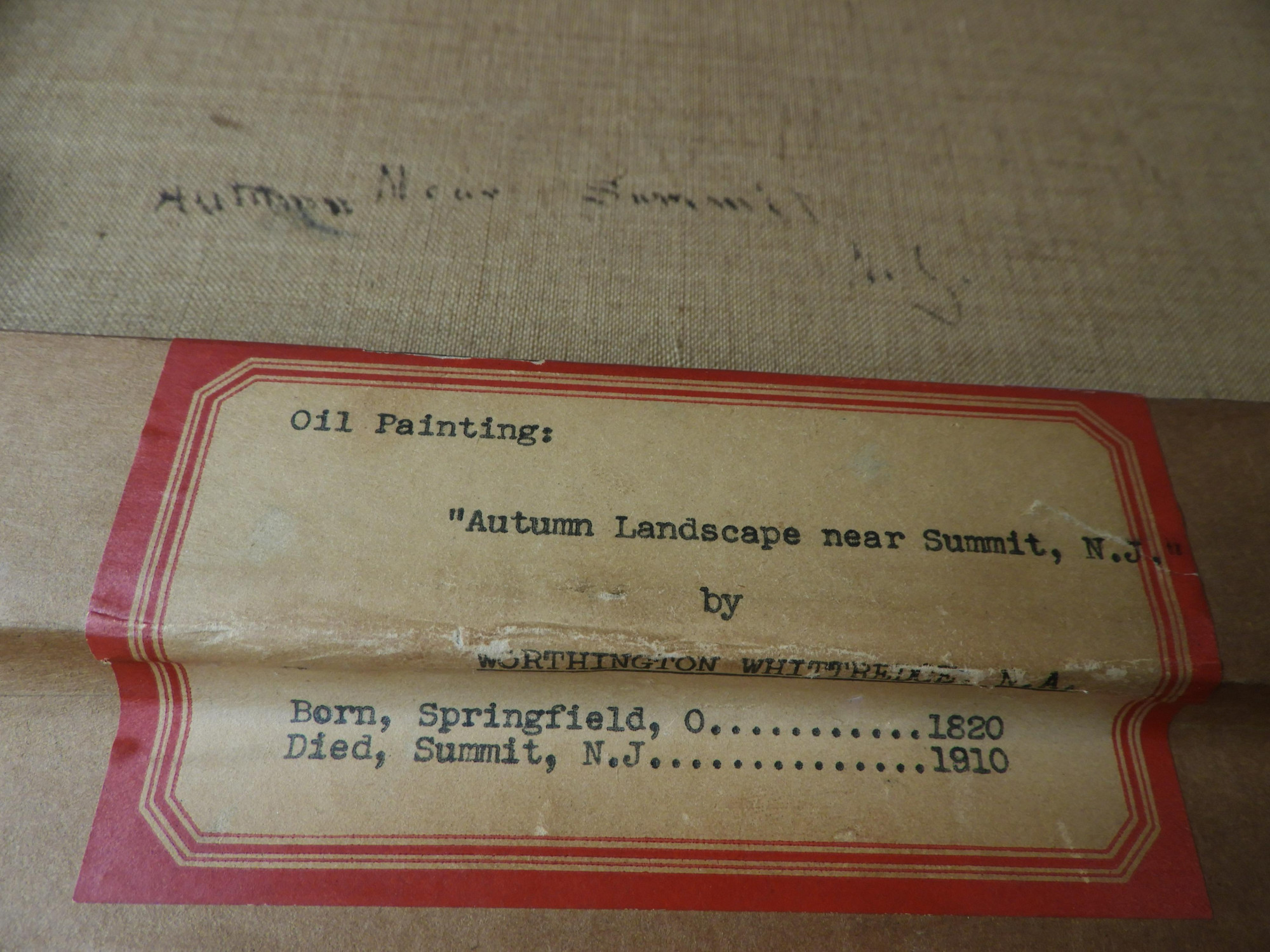 Thomas Worthington Whittredge (American, 1820-1910) Autumn near Summit New Jersey, O/C, signed lower right Dimensions: 10 1/2 x 16, framed 13 1/2 x 19 3/4 (RMAS472)(MM)