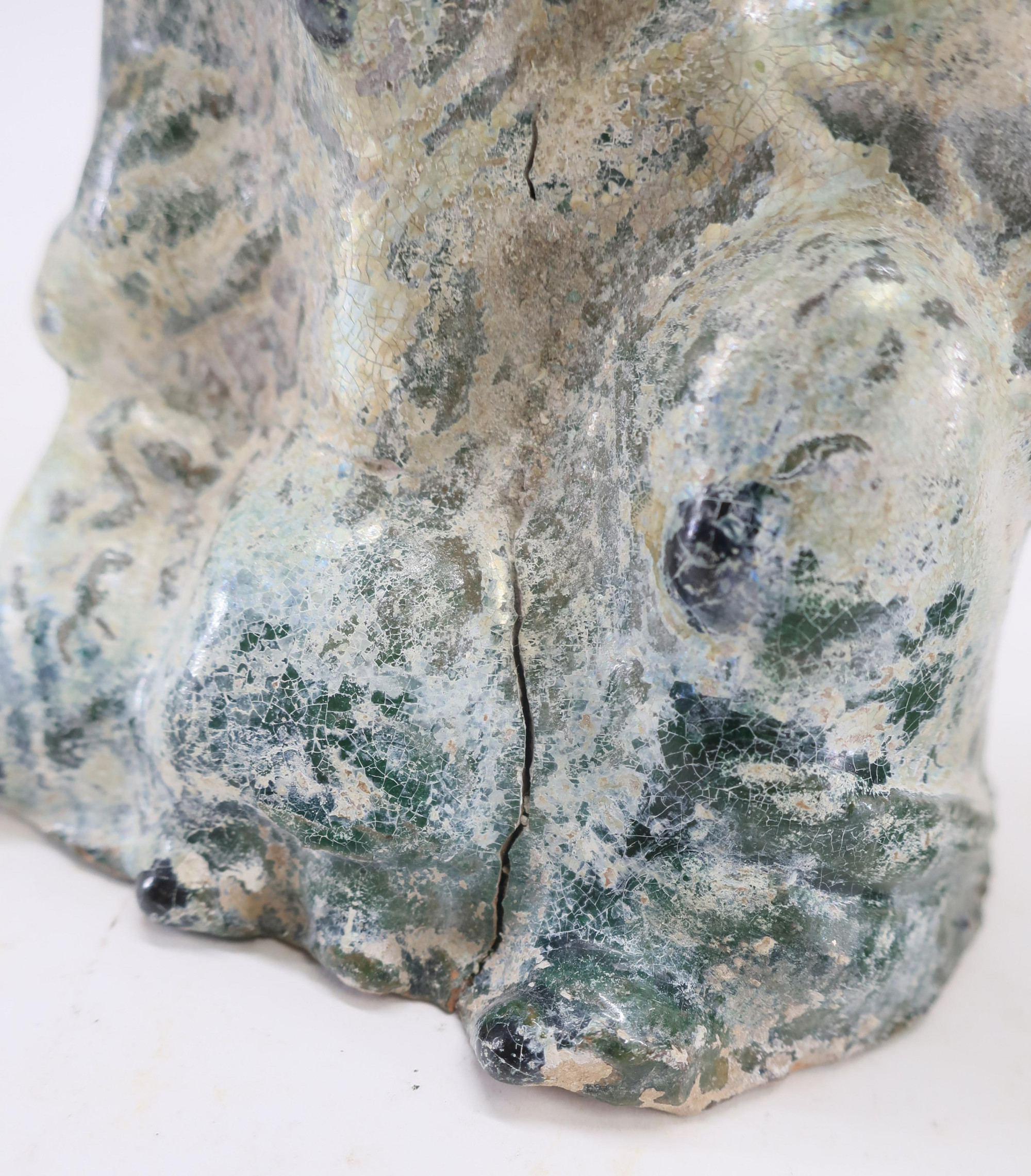 Mother and Child molded and worked form in lead green glazes over terra-cotta. Good iridescence and wear appropriate to age. Eastern Han Dynasty (25–220 CE). Purchased at Anthony J. Allen's Antiques, NZ. Published in "Allen's Authentication of Ancient Chinese Ceramics", 2006, pg. 234