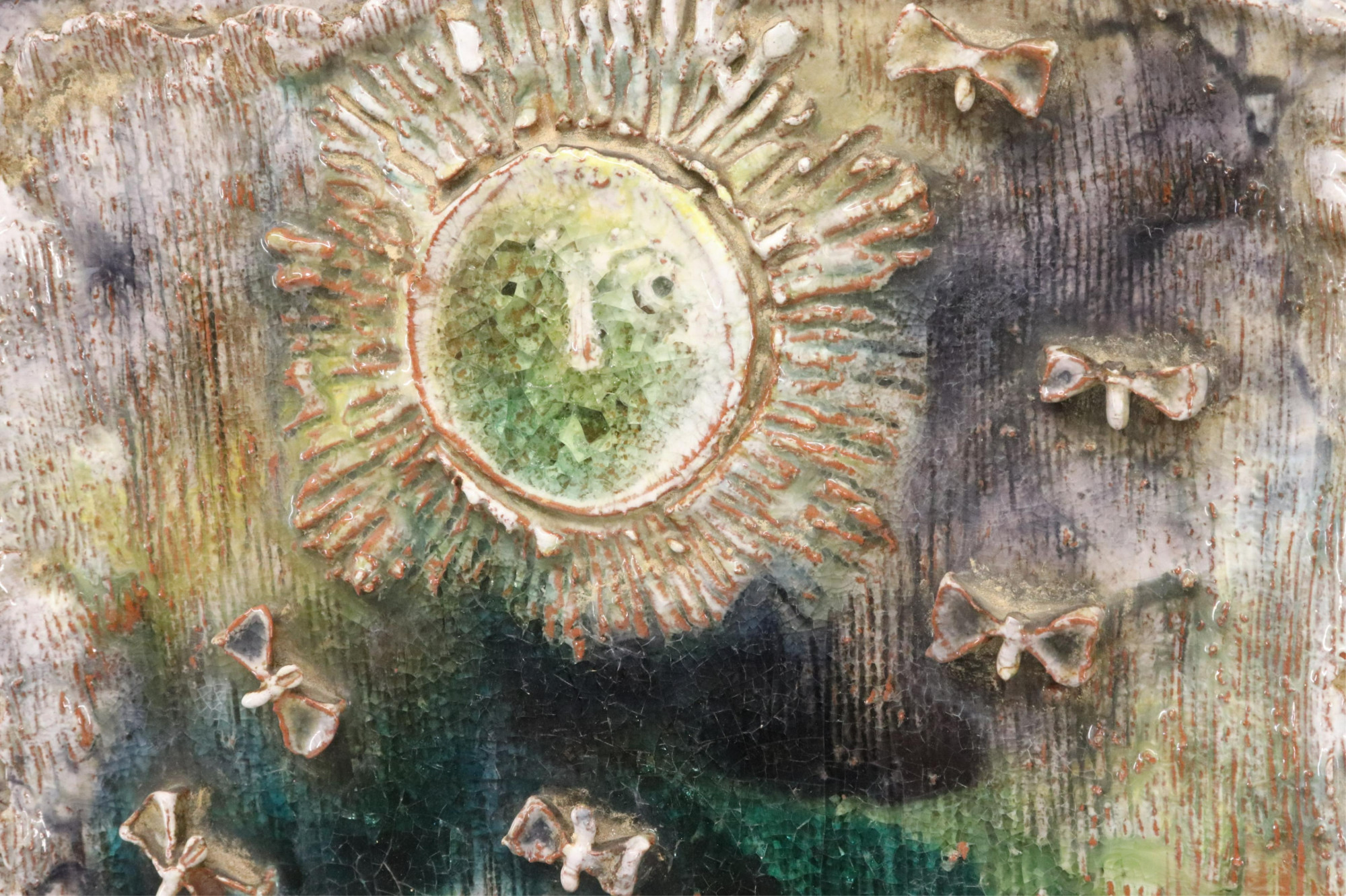 Ugo Lucerni, Italian, 1900-1989, Girl with Butterflies, 1952, glazed terra cotta wall plaque, upper left and right corners signed and dated,verso incised and labeled From a Pawling New York Home Dimensions: 21 1/2 x 12 1/2 (USPR6395)(MM)See More