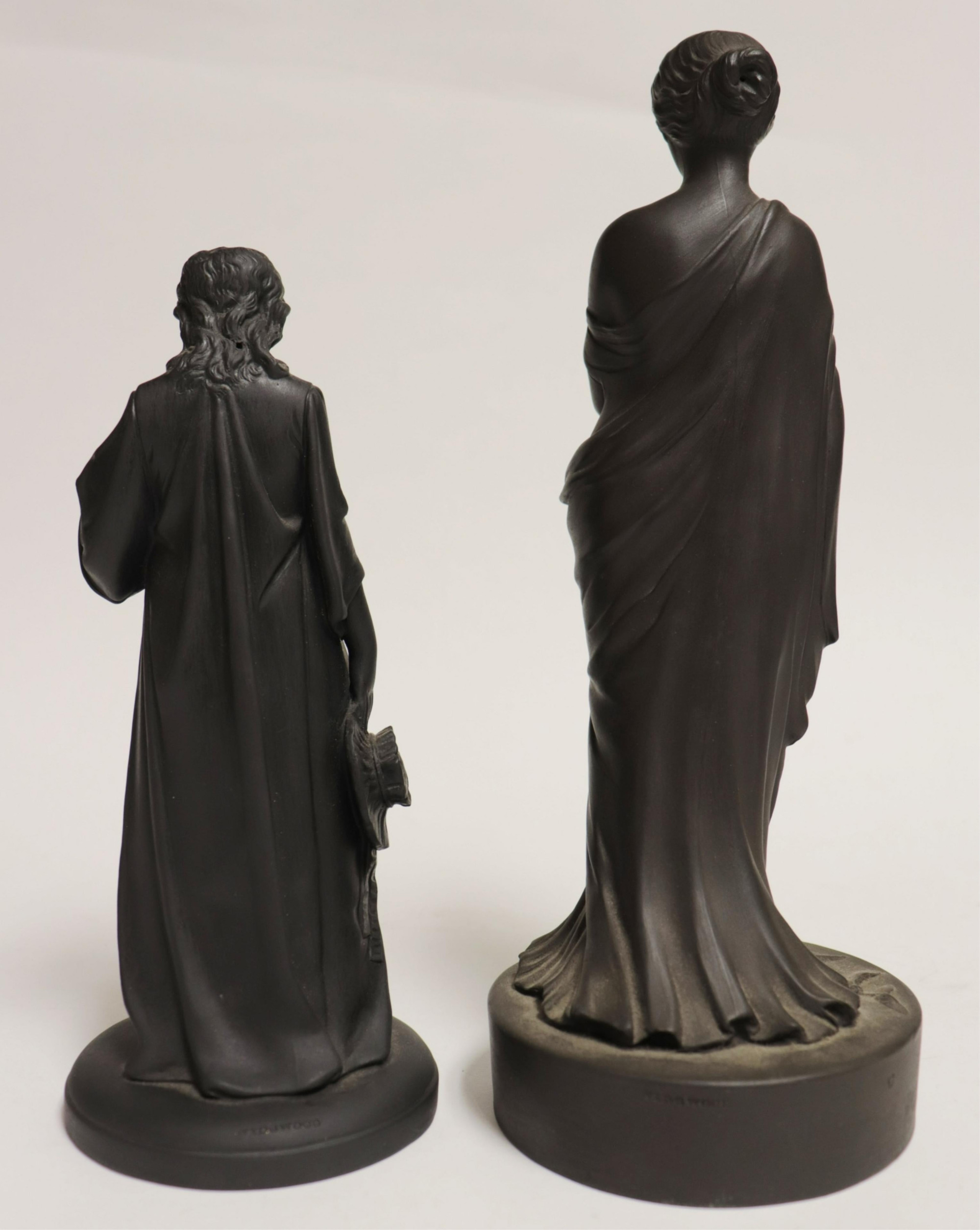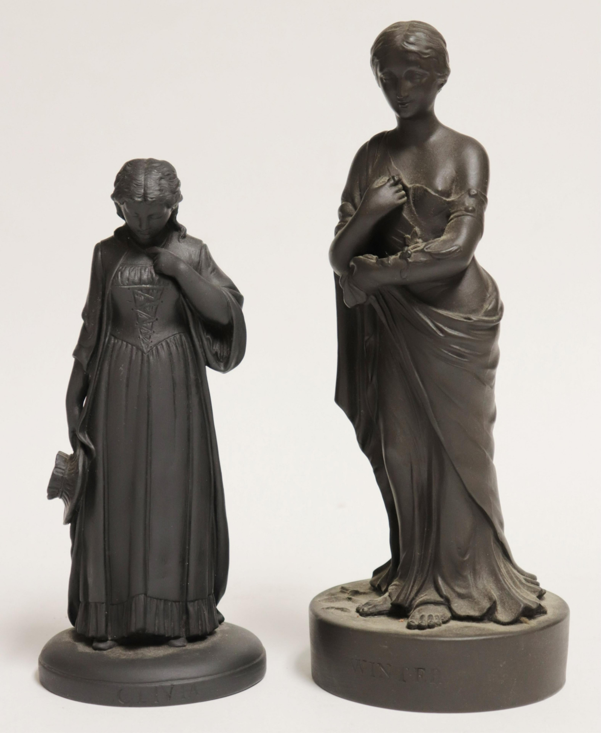 Wedgwood Black Basalt Figures, Olivia & Winter, both with impressed mark (2 pc.) Part II from a major collection of Wedgwood, Long Island, NY Dimensions: 8 1/4" H & 10 1/4" H (ZWED4653/2)(WT)