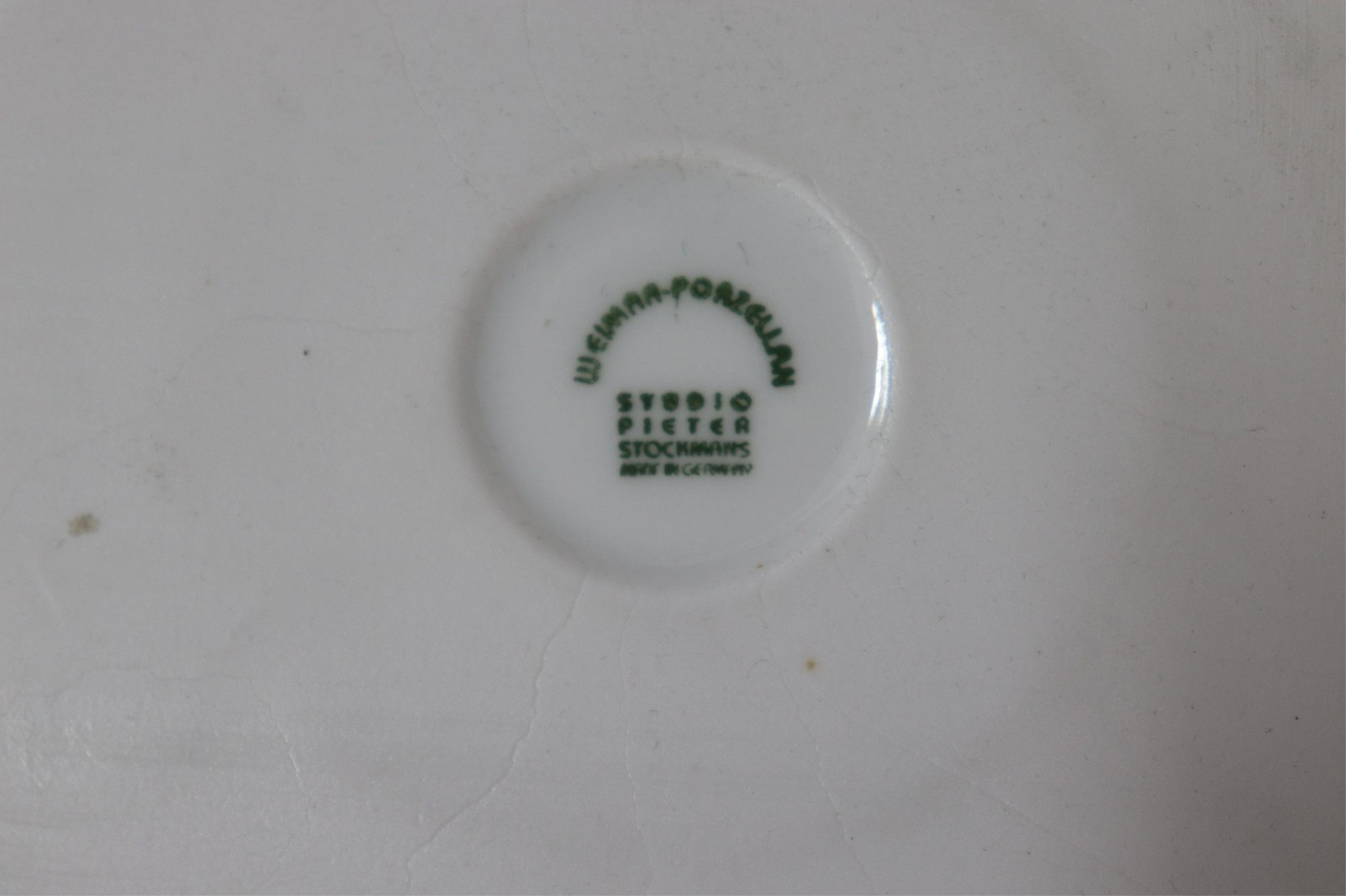 - Weimar Porcelain Studio Pieter Stockmann, 13 white dinner plates, cups & 10 saucers